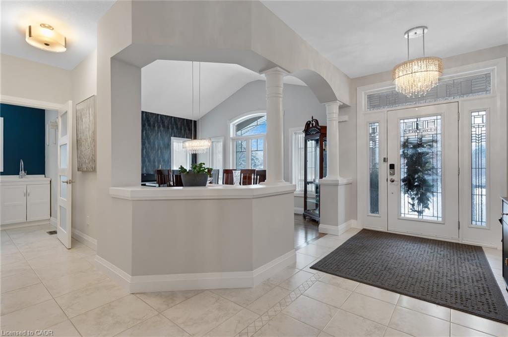 Welcome to 43 Freure Drive in the lovely Highland Ridge area of West Galt in Cambridge. This stunning 5 Star Energy Efficient and spacious Stone and Brick Bungalow has fantastic curb appeal, with a generous front porch, poured concrete sidewalks and patio installed in 2021. As you walk into the home you will be greeted by an extra wide front entry and hallway. The whole house was painted in 2021. The bright main floor opens up to 9ft ceilings and vaulted ceilings in the Dining Room, Family Room, Kitchen and Master Bedroom. The Luxury Kitchen with upgrades in 2021 include new Cabinets, new Island, Quartz countertops and Back Splash, New Fridge in 2023, New Dishwasher 2025, New Induction GE Cafe Brand Stove in 2021, New Microwave GE Cafe Brand in 2021, New Lighting in 2021, New Reverse Osmosis system in 2021. Kitchen and Bathroom Faucets new in 2021. New Washer and Dryer 2024, Many more original upgrades including Doors, Baseboard and Trim, Hardwood flooring, 18x18 Ceramic tile, Transom windows, modern Gas Fireplace in Family room and Main floor Laundry Room. The Master Bedroom includes a large walk-in closet with new Cabinets 2021, Ensuite has large tile shower and double sinks. The fully finished basement perfect for an in-law set up, includes a large rec room area, newer Kitchenette in 2023, 2 bedrooms, full 3pc bathroom with ceramic tile flooring, electric fireplace, new Built In Wall Cabinet and TV Console 2023. Large storage room and four oversized egress windows, New Washer and Dryer 2023, New Furnace 2025. Over-sized double garage with extra height, 5 Car Driveway. 8x10 shed. Outside is a New 16x35 New patio, New Pergola and Hot tub 2021, New Fence, Cedar Trees and BBQ Hook Up all in 2021. Close to many amenities including parks, shopping and transportation. This house has it all! Lots and lots of upgrades! Move In and drop your furniture! Don't Delay viewing this Immaculate Home.