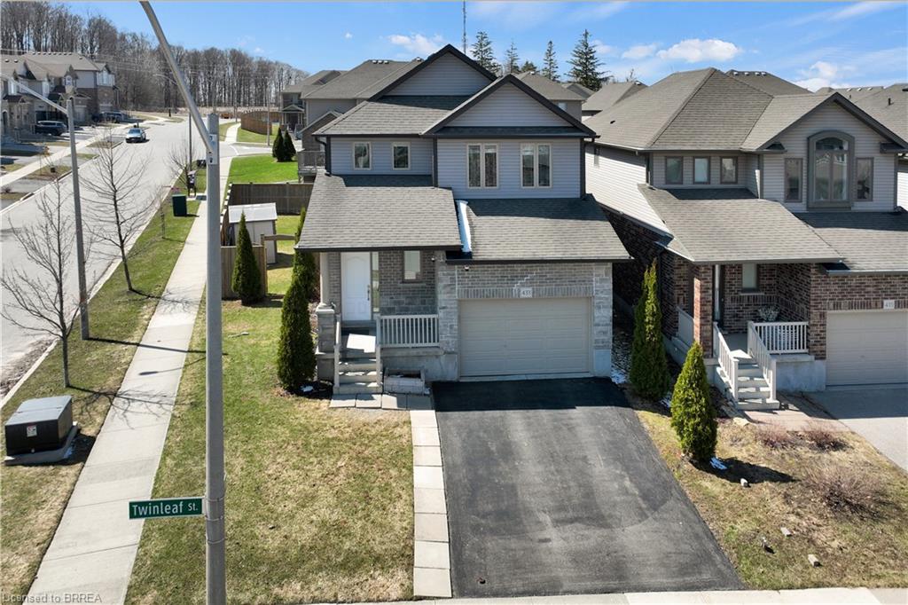Welcome to 433 Twinleaf Street, a bright and beautifully designed corner home in one of Waterloo's most desirable family neighbourhoods. Ideally located within a sought-after school catchment, this home is just a short walk to scenic forest trails and only minutes from universities, Costco, The Boardwalk, supermarkets, shops, restaurants, and everyday amenities. With convenient public transport and cycling routes nearby, getting around the city is easy. Set on a generous south-facing lot, this home is filled with natural light throughout the day. The spacious backyard offers plenty of room to garden, play, entertain, or simply unwind, while the large deck and solid metal gazebo create the perfect outdoor setting for summer dining and relaxing evenings. Inside, the open-concept main floor offers a modern and functional layout, with the kitchen and dining area flowing seamlessly together. A large sliding glass door extends the living space outdoors, making entertaining effortless. The kitchen features abundant storage, and thoughtful design elements continue throughout the home. A rare 1.5-car garage provides excellent storage and flexibility, complemented by parking for two more vehicles in the driveway. Upstairs, the cozy family room offers an ideal second living space for movie nights, reading, or a kids' retreat. The spacious primary bedroom includes a walk-in closet and a modern ensuite designed for everyday comfort. The finished basement adds even more versatility with two additional bedrooms, perfect for guests, a home office, hobby rooms, or multi-purpose living. It also includes a rough-in for a future kitchen or wet bar, with plumbing and electrical already in place, offering excellent potential for added functionality or customization. This is a wonderful opportunity to own a bright, spacious, and well-located family home in Waterloo.