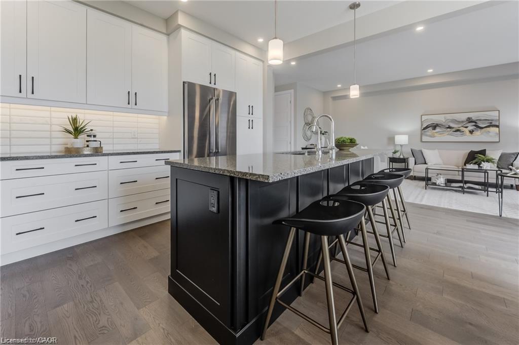 A rare find on the west side of Waterloo. Last chance to own a brand-new Cook Home on a beautiful lot in the Westvale community built by an award-winning local builder. This home is available for viewing and could be ready for your family in February- ask for details. We are installing approximately $60,000 in upgrades!! This home -the West Bank D boasts 2405 sq.ft. – 4bedrooms and 2 ½ baths with a generous mudroom/ laundry room just off the garage. Main floor has hardwood and 12” x 24” ceramic tile floors. Some of this home’s features are 9’ main floor ceilings with 8’ interior doors on the main floor. There is a raised ceiling in the Primary bedroom, ensuite with walk-in shower and soaker tub. An impressive foyer greets you with tall windows that flood the staircase with natural light. The main floor has an open plan with a great kitchen with large island and 42” tall kitchen uppers complete with under cabinet lighting and quartz countertops. The kitchen boasts a large walk-in pantry. There is a very generous dinette with 8’ x 8’ patio door and it is open to the Great Room and Kitchen. If you work from home, you will love the area in the loft for workspace. The basement has large sunshine windows. Great schools within walking distance. Close to shopping, restaurants at The Boardwalk. Minutes from Zehrs Beechwood and Costco and a Par 3, 9-hole golf course.