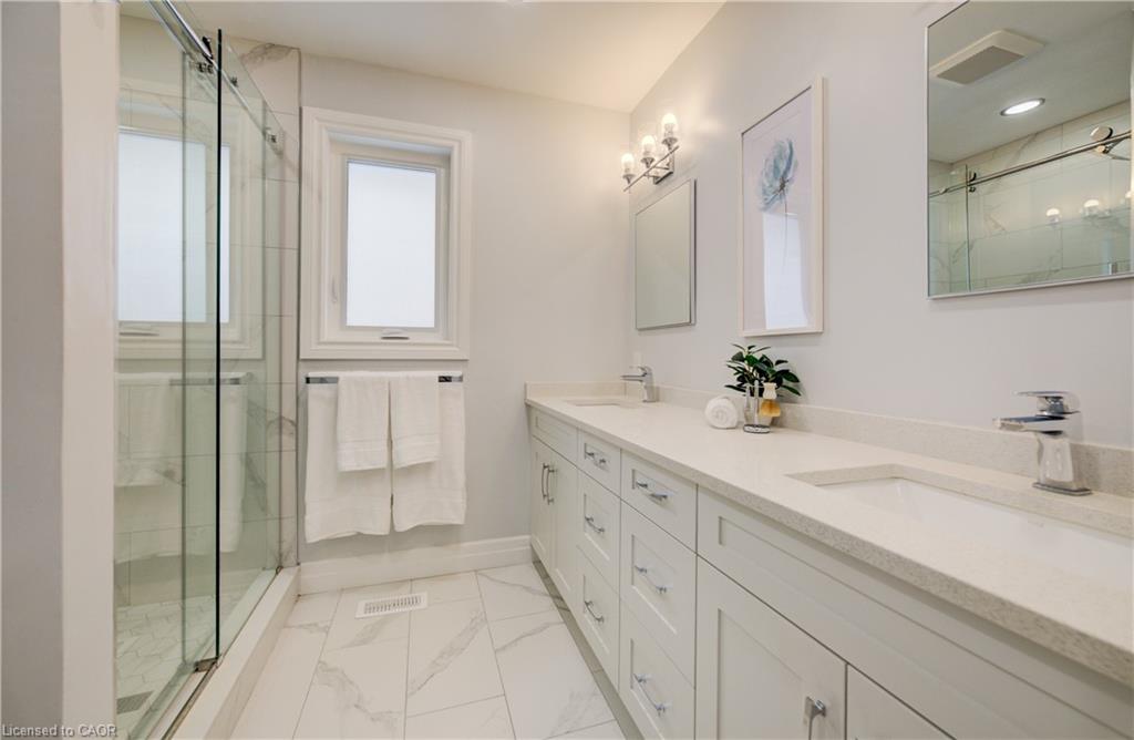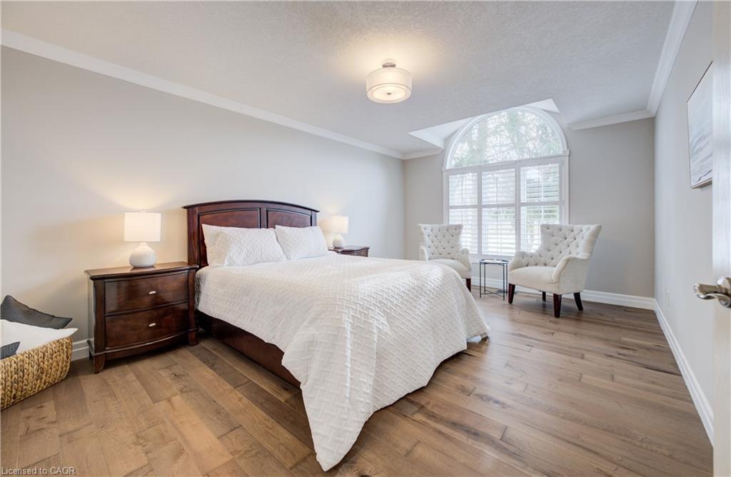 Rare Opportunity Bungalow With Over 3,000 Sq Ft of Living Space in the Desirable North Lakeshore neighbourhood that Backs onto Gorgeous Greenspace. Beautiful Hardwood throughout the Main Floor. Updated Spacious Kitchen includes Quartz Counters, Stainless Steel Appliances and a Large Pantry Cupboard. Living Room Features a Stunning Gas Fireplace and Beautiful Views. From the Eat-In Area You can Access a Large Deck Where You can Enjoy Nature in Your Own Backyard! The Dining Room is Separate. Large Main Bedroom has a Lovely Arch Window, Walk-in Closet and Updated 4 pc Ensuite with Double Sinks and Walk-In Shower. Main Floor also has Powder Room, 2 Large Bedrooms and a 4 pc Bath. Lower level is Newly Carpeted with a Big Bedroom and Updated 3 pc Bathroom. Huge Family Room is Full of Possibilities. Laundry Room has Handy 2nd Staircase to the 2 Car Garage. Walk or Bike on the trail behind Your House to St. Jacobs Market. This is Cottage Living in the City!!