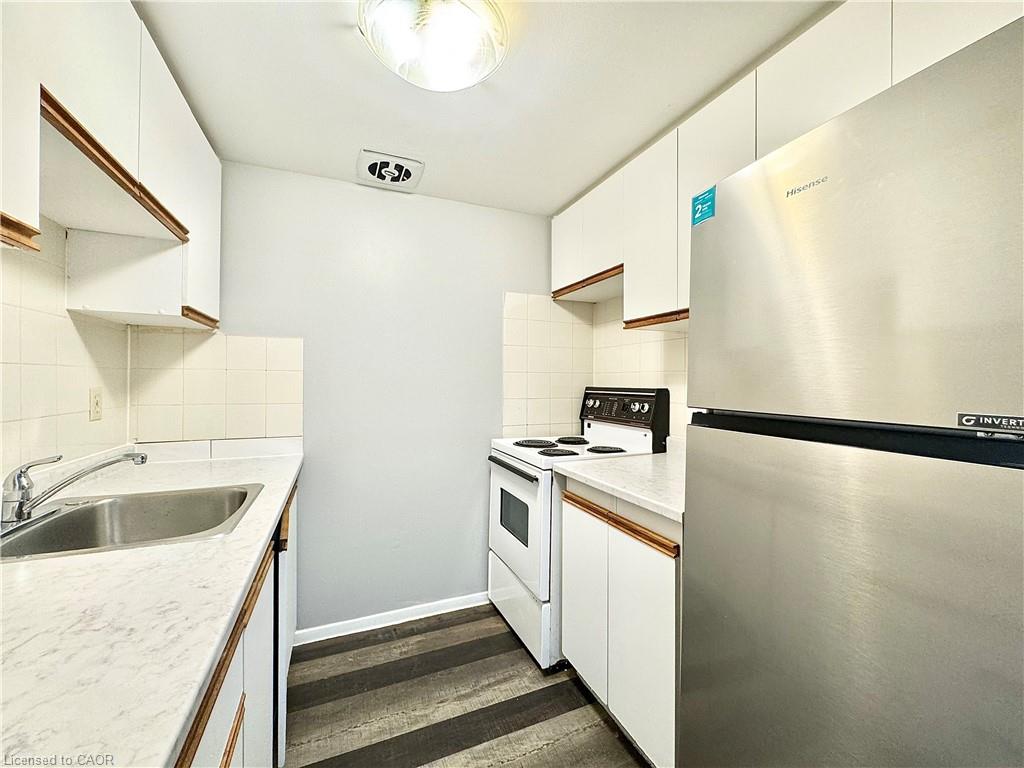 Welcome to 1200 Courtland Avenue East, Unit 45 in Kitchener. This two storey townhome offers bright, comfortable living with approximately 1,000 square feet of well planned space. The main level features a spacious living and dining area with large windows that bring in plenty of natural light, creating a warm and inviting atmosphere. The kitchen provides ample cabinet space and a practical layout that works well for everyday cooking and dining.