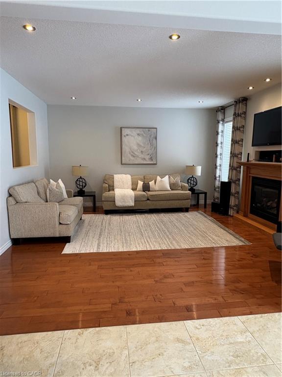 The front door is surrounded with windows, opens to a spacious foyer, with a double closet, access to all levels, and inside entry to the garage. The main level has 9-ft ceilings, tile and hardwood flooring throughout, a hardwood staircase to the upper level, an upgraded 2 piece bathroom, a formal dining room, and a cozy living room with gas fireplace. The open-concept eat-in kitchen offers extra cabinets, under-cabinet lighting, a centre island with seating, and granite countertops. The dinette has sliding doors to the backyard. The upper level has carpeted flooring. The primary bedroom includes a double-door entry, walk-in closet, and upgraded 5-piece ensuite with granite vanity top, and tile flooring. Bedrooms #2, #3, #4 each have a double closet, and share an upgraded 5-piece main bathroom.