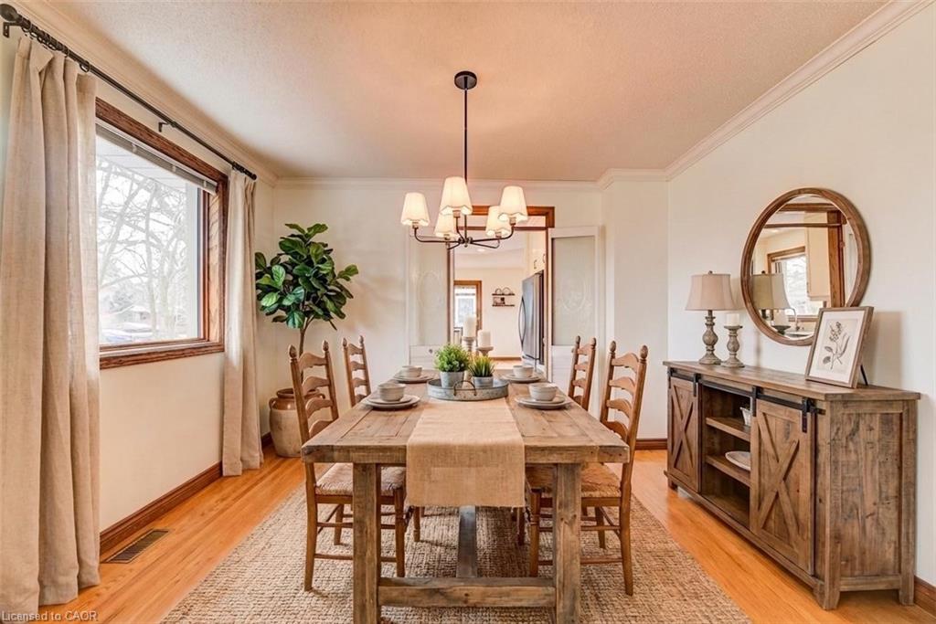 Welcome to 458 Winston Blvd. This Executive-style Hespeler bungalow offers over 3,000 sq ft of finished living space, set on a large private lot and featuring a double car garage. From the moment you enter, you’re welcomed by wide hallways finished with engineered hardwood, creating an immediate sense of space and quality. The main floor features a spacious separate living room and a dedicated formal dining room, along with 3 generously sized bedrooms and 2 full bathrooms, including a generous primary suite with its own ensuite. Bright, oversized rooms and large windows throughout provide an abundance of natural light. The fully renovated kitchen showcases custom cabinetry and stainless steel appliances, quartz countertop and includes a bright kitchen dinette with views of the rear yard. The kitchen opens into a welcoming living room with a cozy gas fireplace and large bay windows—perfect for everyday living and entertaining. The finished basement adds exceptional versatility with a dedicated office space, a full spa-style bathroom with sauna, and plenty of additional living area. Step outside to enjoy the expansive yard complete with a deck featuring a durable composite surface, a separate shed, and ample space for a workshop. Triple-pane, top-of-the-line windows throughout the home add comfort and efficiency. Additional features include a secondary electrical panel and central vacuum, Windows 2014, 35 year shingled roof 2005, Furnace and A/C 2014. A rare opportunity to own a spacious, well-appointed bungalow with premium features inside and out.