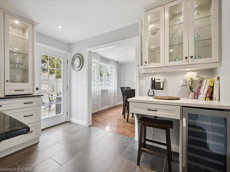 A beautiful home well maintained in Forest Heights sought after neighbourhood! This 4 bedroom well maintained home, features an b an updated shaker kitchen cabinetry. Lovely accents includes , crown moulding, under lighting and upgraded backsplash. Stainless steel fridge and dishwasher, flat top stove, wine fridge and desk area. Double pantry adds for additional storage space. Island with seating area and additional pull out drawers. Access to rear yard from kitchen to a large back yard. Pool size! Aggregate patio and retaining wall to upper level yard! 2pc. powder room off kitchen area. Formal living room and dining room, gracious front entrance solid oak staircase to upper level. 3 bedrooms, spacious master with ample closet space. Main bath room feature large soaker tub and glass shower. Hardwood floors and nice tile. Finished basement with 3pc. bath and large rec room, laminate flooring in basement. Drapery and blinds included. Stone shed with power for many uses. Water heater, water softener, air conditioner included. Newer furnace installed. Double drive way. Large front porch.