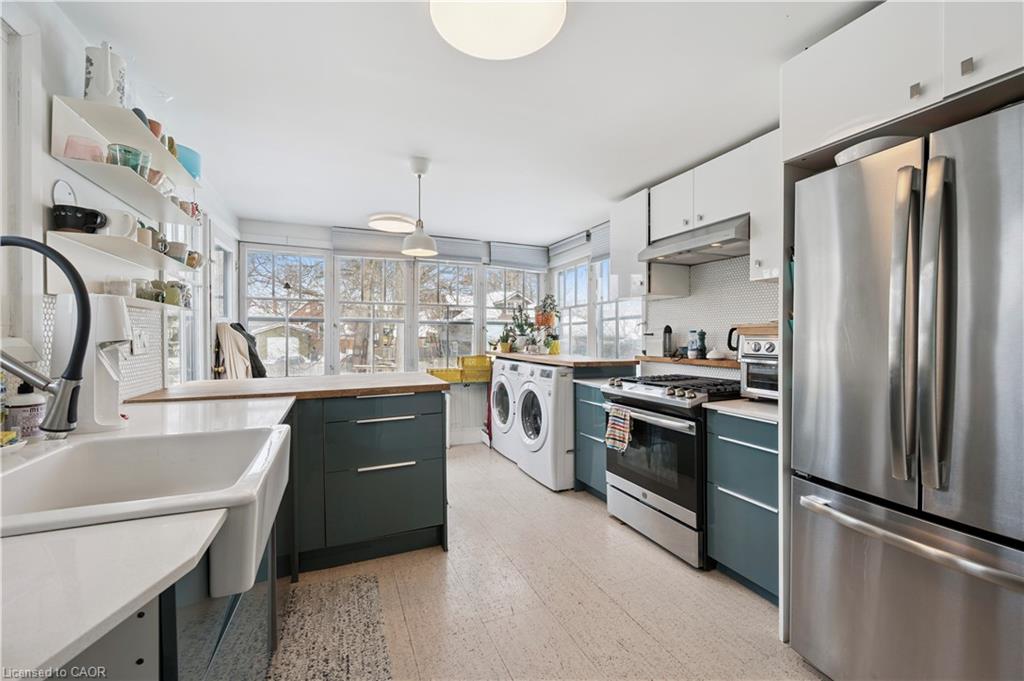 One-of-a-kind Exhibition Park rental opportunity including Water, Hydro & Gas! This upper-level suite in a charming red-brick century home offers over 1,700 sq ft of bright, flexible living space with 3 bedrooms and a 4-piece bath. Flooded with natural light and a cheerful energy, the unit features two private entrances: a front main-level entry leading to a sun-filled foyer - ideal for a home office, studio, or additional storage - and a rear upper-level entrance that opens directly into the updated modern kitchen with cork flooring and a private laundry area. The kitchen flows seamlessly into the dining space, creating a warm and functional layout for everyday living. Currently configured with two bedrooms and a living room on the second floor, and a spacious third-floor primary suite with additional living and storage space, the layout is highly versatile. No matter what room you're in, each window fills the space with beautiful natural light and leafy views, creating the feeling of being canopied among the trees. Additional highlights include a private rear entrance with deck space, access to a large, private backyard (the main-floor unit has a separate fenced yard), two parking spaces, optional basement storage, and heat pumps (wall-unit A/C) throughout for year-round comfort. Enjoy the best of Downtown Guelph and Exhibition Park living - steps to trails leading straight into downtown, a short walk to Exhibition Park, and close to local shops, cafés, and everyday amenities. Preferred possession: April 15th.