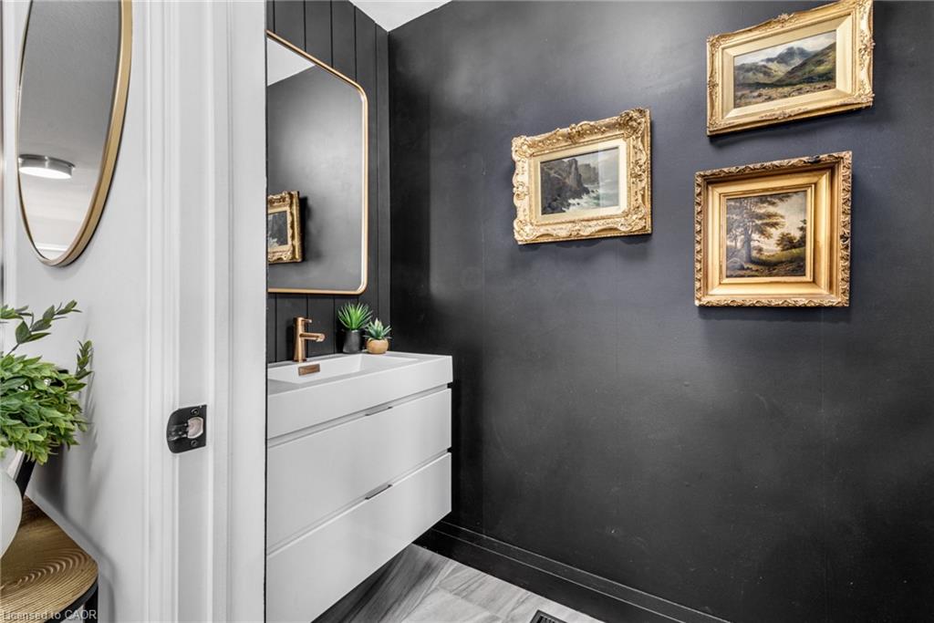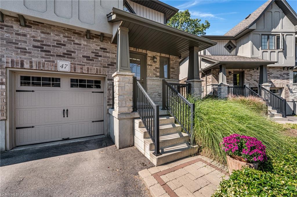 SAGINAW WOODS EXECUTIVE TOWNHOME! Tucked into a family-friendly neighbourhood celebrated for its excellent schools, walking paths, bike lanes, and quick 401 access. Step inside and you’ll immediately feel the attention to detail. The entryway sets the tone with custom wainscoting and upgraded tile, leading you into an open main floor designed for connection. The kitchen is a showpiece, featuring lacquer cabinets with soft-close doors, quartz countertops, a maple wood island, a barn beam, an upgraded vent hood, a built-in microwave, and crown molding. Every element feels considered, down to the hardware & backsplash. The family room is warm and inviting, anchored by a gas fireplace with a feature wall and custom drapery. Extra-large sliding doors let in natural light and open to a deck overlooking a wall of mature trees — the perfect spot for morning coffee or a summer BBQ, complete with a gas line. Upstairs, hardwood stairs with black iron spindles lead to a cozy landing that doubles as a reading nook. The primary suite is a true retreat with custom wall moulding, blackout drapes, and a fully outfitted walk-in closet behind a custom steel door. The ensuite offers a floating maple vanity with quartz top and upgraded tile. 2 additional bedrooms feature hardwood floors and designer touches — from a faux-brick feature wall to statement wallpaper — plus a full guest bath with lacquer vanity and quartz counters. The lower level, finished in 2021, feels like a boutique lounge with a custom tiled entertainment wall, soundbar, live-edge wood shelves with puck lighting, wood slat feature wall, & electric fireplace. A spa-like 3pc bath with a curbless shower and floating vanity completes this stunning space. Immaculately finished, thoughtfully upgraded, pristine and move-in ready.