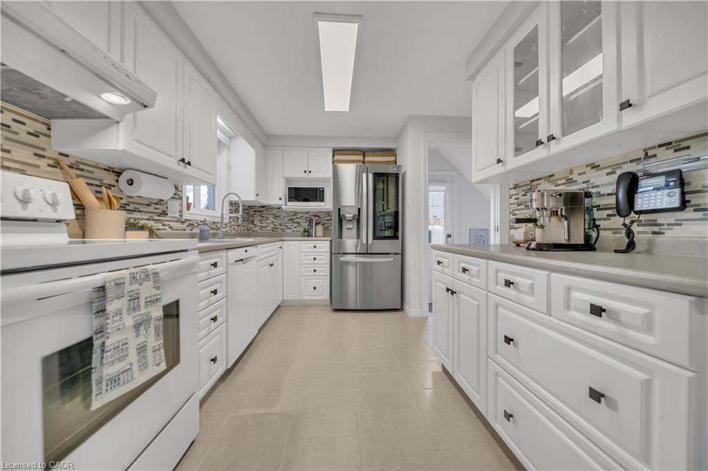 Welcome to 477 Strasburg Road, located in the heart of Kitchener’s vibrant and family-friendly community. This charming semi-detached home is the perfect opportunity for first-time buyers, young families or savvy investors. Set on a spacious 30 ft x 110 ft lot, this home offers 3 bedrooms, 2 bathrooms & parking for up to 3 vehicles. Step inside, you’ll immediately notice the carpet-free design, creating a fresh & modern flow throughout. The bright & airy living room is enhanced with a wall of windows & pot lights, filling the space with natural light. The kitchen, thoughtfully upgraded in 2013, features timeless white cabinetry, a chic backsplash, new refrigerator just 2 years old & a cozy dining area perfect for family dinners. Upstairs, you’ll find three generously sized bedrooms, each with ceiling fans for comfort. The shared 4pc bathroom is, featuring a mirrored cabinet with extra storage. The fully finished basement with separate entrance, offering a large recreation room perfect for movie nights, entertaining or even a home gym. There’s also a dedicated office area, a convenient 2-piece bathroom & plenty of storage space to keep things organized. Outside, the backyard is truly the heart of this home. The fully fenced yard provides privacy & space for children or pets to play. Enjoy the covered deck with a gazebo, an additional patio area & a garden shed for storage, a perfect outdoor retreat for family gatherings, gardening or relaxing evenings. Upgrades: The laminate flooring was completed in 2013, while most windows were replaced in 2015, Water softener 2024, AC & Furnace 2016. This home is ideally located just a short walk to McLennan Park, Block Line LRT, St. Mary’s High School, grocery stores & playground. Everything you need is right at your doorstep, making this property a rare find in one of Kitchener’s most desirable areas. With its thoughtful updates, spacious layout, & unbeatable location, this is a move-in ready home. Book your showing Today