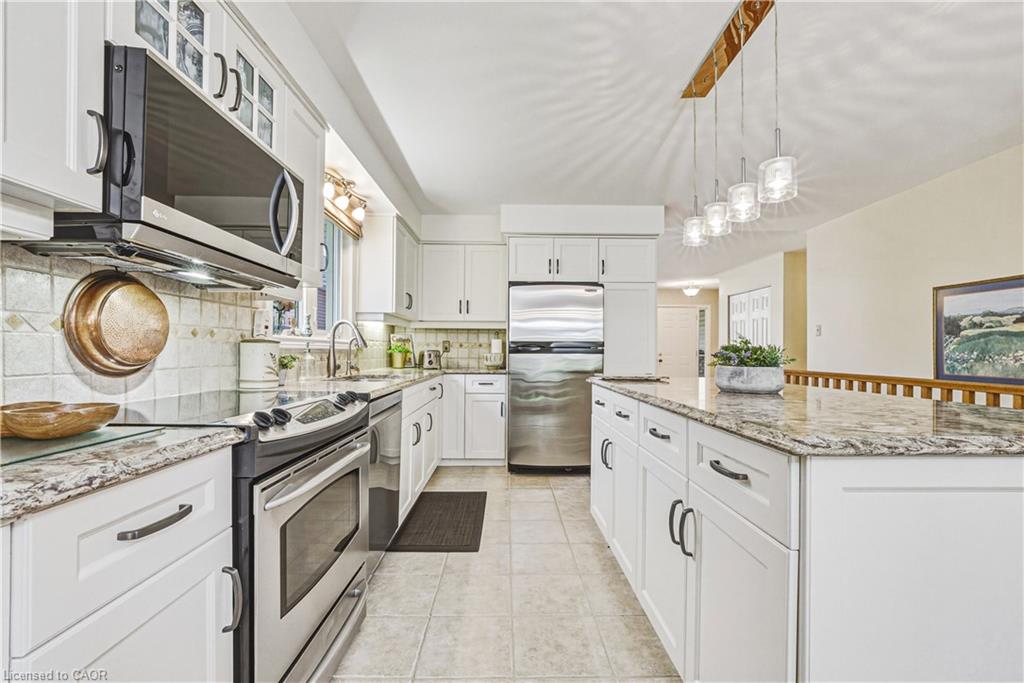 Welcome to this rare executive bungalow in the highly sought-after Kortright Hills community, backing onto Mollison Park for ultimate privacy and natural beauty. Built by Carson Reid Homes, this exceptional residence offers approximately 1600 sq ft of elegant, well-designed living space with 3 bedrooms and 3 bathrooms-ideal for families and entertainers alike. Step inside to bright, spacious principal rooms featuring rich hardwood flooring throughout. The sun-filled living room overlooks beautifully landscaped front gardens and flows seamlessly into a formal dining area-perfect for hosting. The impressive family room showcases soaring cathedral ceilings, a cozy fireplace, and oversized windows that flood the space with natural light. The chef-inspired kitchen is equipped with granite countertops, stainless steel appliances, and plenty of space to cook, gather, and entertain. Step out to the covered deck-perfect for year-round enjoyment-overlooking the private, landscaped backyard and tranquil park setting.The primary suite is a true retreat, complete with an ensuite featuring granite countertops and skylight. Two additional bedrooms, a full bathroom, and convenient main floor laundry with direct garage access complete this level.The unspoiled basement offers endless potential-create the space you've always envisioned. Enjoy your own backyard oasis with a covered patio and mature gardens. Perfectly located close to scenic trails, and within walking distance to Kortright Hills Public School and the YMCA (pool, fitness centre, daycare & programs). Just minutes to Stone Road Mall, shopping, dining, and all amenities, with easy access to the Hanlon Parkway for commuters.