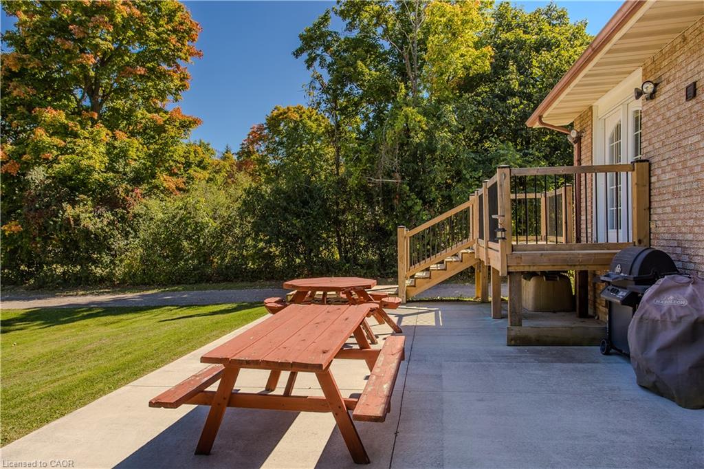Set on a rare just over 1.6-acre lot, with an expansive commercially zoned workshop, this property offers endless potential for families seeking both a welcoming home and unique investment or business opportunities. With over 3040sq. ft. of total living space across a 5-level side-split, it blends lifestyle, functionality, and future value. Perfectly located just minutes from Guelph, Eden Mills, Rockwood, and Hwy 401, it combines privacy and tranquility with exceptional convenience. The front exterior features a landscaped setting with mature trees, a welcoming porch, and a driveway accommodating 20+ vehicles. Inside, the main floor shines with hardwood floors, an open-concept design, and a bright eat-in kitchen with stainless steel appliances, ample cabinetry, tile backsplash, and over-sink window. The dining room, finished with crown moulding and French door walkout, leads to an elevated deck, while the living room offers a fireplace and bay window for relaxed family gatherings. The upper level hosts a spacious primary suite with walk-in closet and 3-piece ensuite, plus three additional bedrooms and a 4-piece bathroom. On the lower levels, enjoy a family room with brick-surround fireplace, convenient laundry, a 2-piece bath, and a versatile rec room with ample storage—ideal for play, fitness, or hobbies. The backyard is the true highlight: zoned for commercial use and designed with families in mind, it features a fire pit, concrete patio, elevated deck, and expansive green space. For those with entrepreneurial vision, the 80’ x 40’ (3,200 sq. ft.) fully insulated and heated shop is unmatched—equipped with water, separate hydro service, and 600V, 240V, and 110V power, plus a laser CNC machine. This is more than a family home—it’s a lifestyle property offering comfort, privacy, and commercial flexibility, all within minutes of everyday amenities.