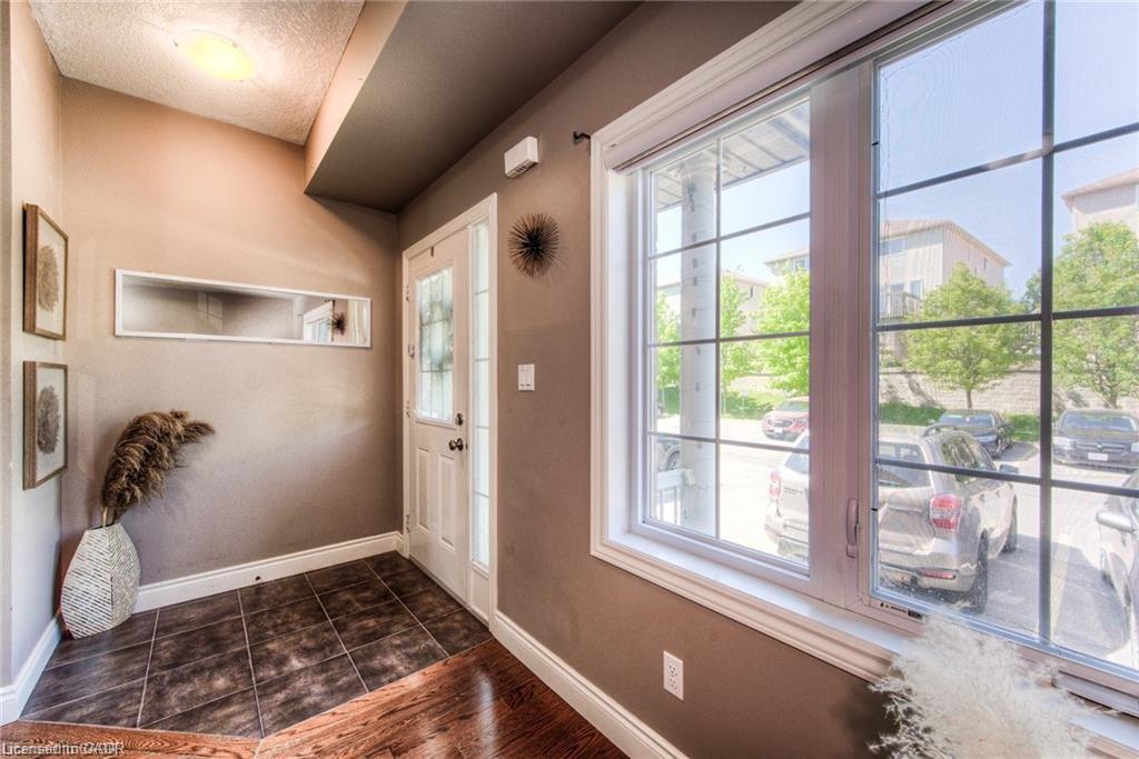 TWO PARKING SPACES INCLUDED! Available on Jan 1, 2026, this lovely townhouse unit is the perfect backdrop to kick off the new year with a bang! This charming 3-bed 2-bath unit has plenty of space for all types of residents, from young professionals to growing families and anything in between. Full of natural light, this well maintained unit is move-in ready. Enjoy the eat-in kitchen with beautiful countertops, lots of cabinet space, and direct access to the deck. Prepare to enjoy the summer to the fullest in this outdoor oasis, a perfect venue to unwind after a long day. Upstairs, the bedrooms are well laid out, with a spacious primary bedroom offering plenty of light through the three large windows and provides the luxury of a walk-in closet. Two additional versatile bedrooms share a beautifully appointed 4pc bathroom. Perfectly located, Highway 7/8 is only 1 minute away and Sunrise Shopping Centre is also nearby, offering major grocery stores and restaurants, not to mention daycares, schools, and parks and trails all within 8 minutes or less! This gorgeous townhouse has everything you need and want — the only thing missing is you! Book your private showing today!