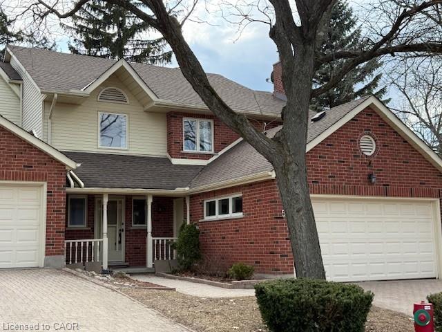 Welcome to one of only eight custom-built executive condominium townhomes in prestigious Westmount—offering over 2600 sq. ft. plus a finished basement, a large 2-car garage, and interlock brick driveway. Ideal location with quick access to Westmount Golf & Country Club, Belmont Village, Uptown Waterloo, and the Iron Horse Trail. This end-unit, former builder’s home, features a welcoming and spacious tiled foyer with sweeping staircase, updated hardwood flooring through the formal living room, dining room, and family room with gas fireplace. The updated kitchen has Brazilian granite counters, built-in appliances, a large island, and walkout to a private deck and landscaped yard. Upstairs you will find three generous bedrooms, including a primary suite with walk-in closet and updated spa-like ensuite that features a soaker tub, glass shower, and double vanity. Recent updates include a newer roof (2017) and brand-new windows throughout (2024). The finished lower level features a large rec room with wood-burning fireplace, 2-pc bath, workshop, and ample storage. Some photos feature virtual staging.