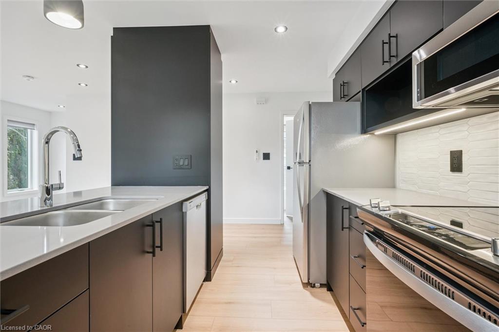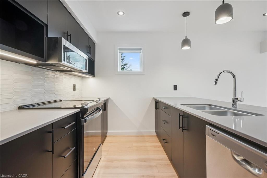 THE ONE that exceeds expectations! Welcome to Unit #5 at 66 Union St E in Uptown Waterloo—a brand new, never-lived-in, bright and beautifully designed 2-bedroom, 1-bathroom rental that blends modern luxury with boutique-style living. Not interested in a condo, but still want to live in the heart of Uptown? This purpose-built sixplex offers the perfect solution with commercial-grade construction, private entrances, and a unique sense of exclusivity. Inside, you’ll find a stylish two-level layout with an open-concept living space, wide-plank luxury vinyl flooring, quartz countertops, and a sleek kitchen featuring stainless steel appliances (including a dishwasher), generous storage, and a large peninsula with seating. Upstairs, discover two bedrooms including a spacious primary, a 4-pc bathroom with dual sinks, and a large walk-in shower. Enjoy the convenience of your own private mailbox, hydro meter, and heating/cooling controls—plus custom roller shade window coverings already installed. Located in one of Waterloo’s most desirable and walkable neighbourhoods, you’re steps from parks, the Iron Horse Trail, Midtown Hospital, public transit, and Uptown’s best restaurants, shops, and services. The beautifully landscaped exterior includes outdoor bike storage and a shared rear yard with picnic tables. In addition, this unit includes two parking spots. Snow removal, salt application and landscaping