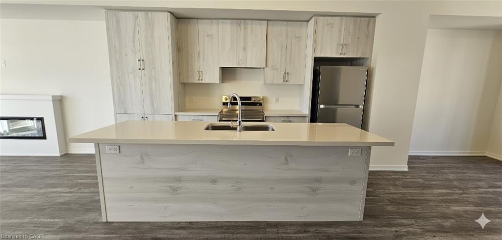 MODERN 3-STOREY TOWNHOME FOR LEASE! Welcome to your next home— a brand new, modern townhome with a double garage. From the moment you step inside, you’ll notice the thoughtful design and natural light that fills each room. The ground level offers bedroom #4 and a 3pc bathroom, making use of all space. On the main living level, an open-concept layout creates the perfect space for everyday living and entertaining. The sleek kitchen, complete with stainless steel appliances, quartz counters, and a spacious island, flows seamlessly into the living room. Here, you can unwind by the fireplace or step out onto your private balcony to enjoy fresh air and sunshine. A separate dining area provides the ideal spot for family dinners or hosting friends. Upstairs, the 3 bedrooms are bright and inviting. The primary suite is a true retreat, featuring a large walk-in closet and a private ensuite with modern finishes. This home is part of a vibrant new community, surrounded by all the amenities you need. Shopping, restaurants, parks, and schools are only minutes away, and with quick access to Highway 8, commuting couldn’t be easier. Utilities (heat, hydro, gas, water, and hot water heater) are the responsibility of the tenant(s). A full application, including credit check, credit score, and credit history is required for all applicants.
