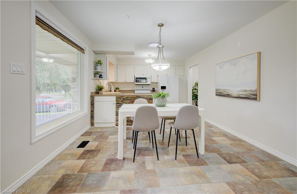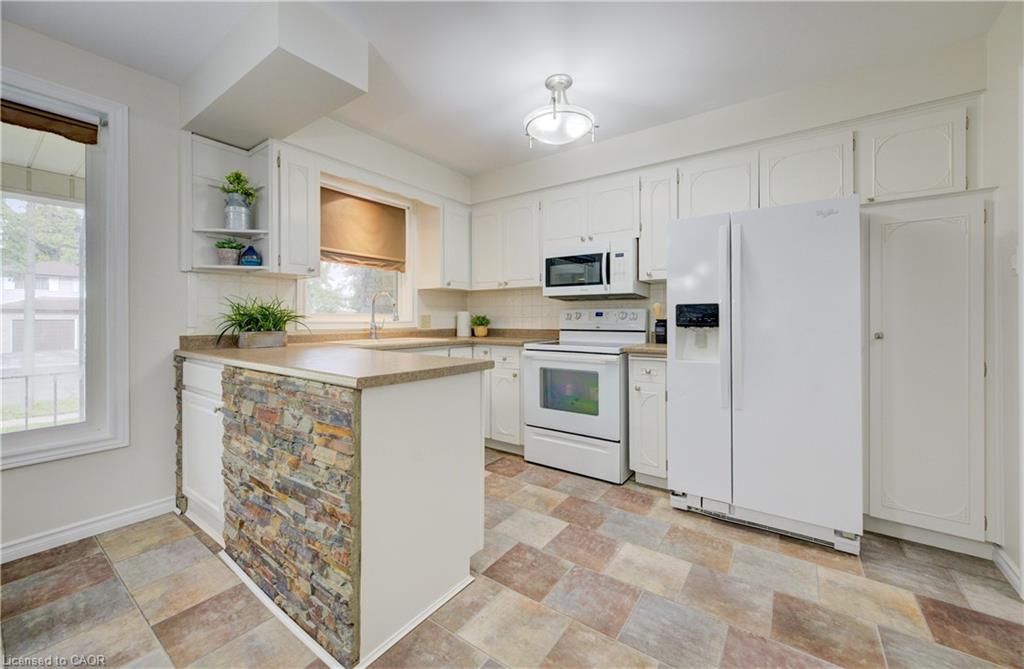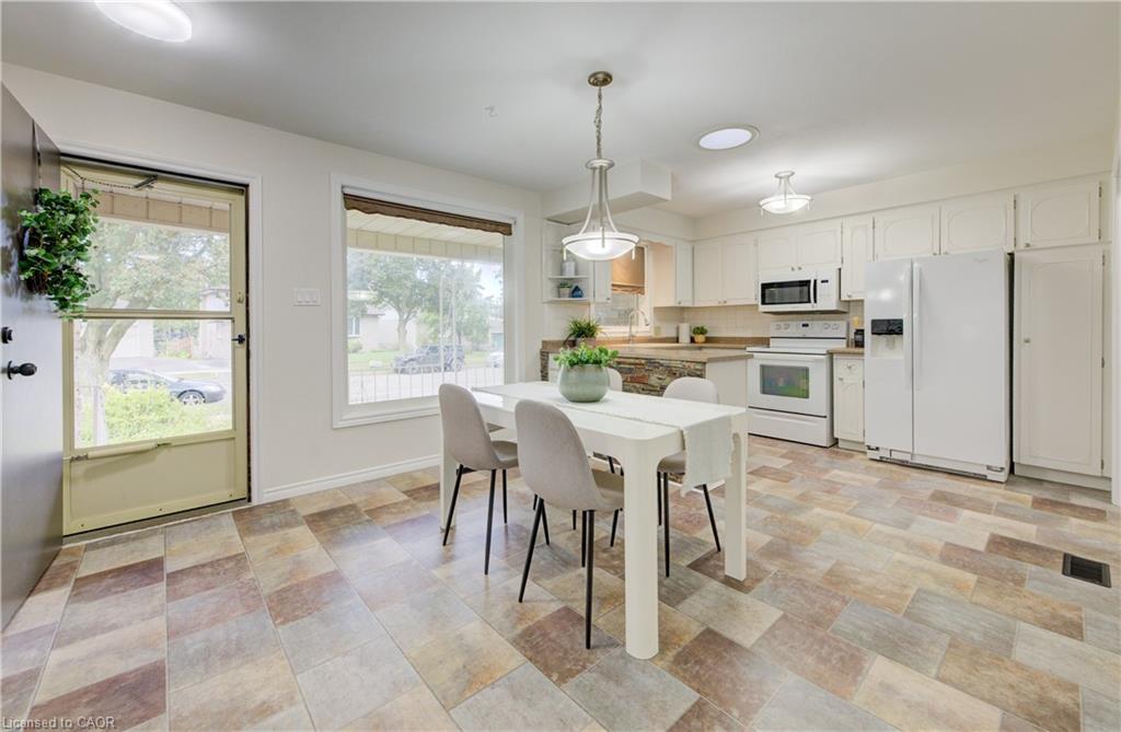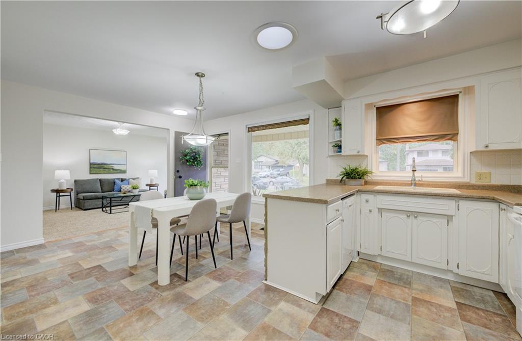 With over 2,700 sq ft of living space, this charming bungalow blends thoughtful design with everyday comfort — and a backyard that backs directly onto Heritage Park. A large covered front porch sets a welcoming tone, leading into a bright, open eat-in kitchen and dining area — the perfect place for family meals or morning coffee. Just off this space, the first of two spacious living rooms offers a comfortable setting to relax or entertain, framed by large front windows that fill the room with light. Down the hall, three well-sized bedrooms and a full family bath provide comfort and convenience, with the bathroom serving as a handy pass-through to the opposite side of the home. Here, you’ll find the second living room — a cozy retreat featuring a gas fireplace and easy access to the main-level laundry, garage, and backyard. The attached single garage adds convenience for parking or storage, while the double-wide driveway offers ample space for guests or multiple vehicles. The partially finished lower level extends the home’s versatility, featuring a second kitchenette, an additional bathroom, and a layout ideal for a future basement suite — there was once a separate entrance to the rec room that could easily be reopened. A second laundry hookup is also available on this level, complementing the main-floor laundry room for added flexibility. Outside, a fully fenced yard provides privacy and peaceful views of Heritage Park, which connects directly to Mackenzie King Public School and Canadian Martyrs Catholic School — a rare and convenient setting for families. A deck and gazebo complete the outdoor retreat, perfect for summer barbecues or relaxing evenings under the stars. Set in a quiet, family-friendly pocket of Kitchener near Stanley Park Mall, Fairview Park Mall, parks, trails, and transit, this home offers suburban calm with city convenience. Here, comfort, connection, and community come together in one truly special place.