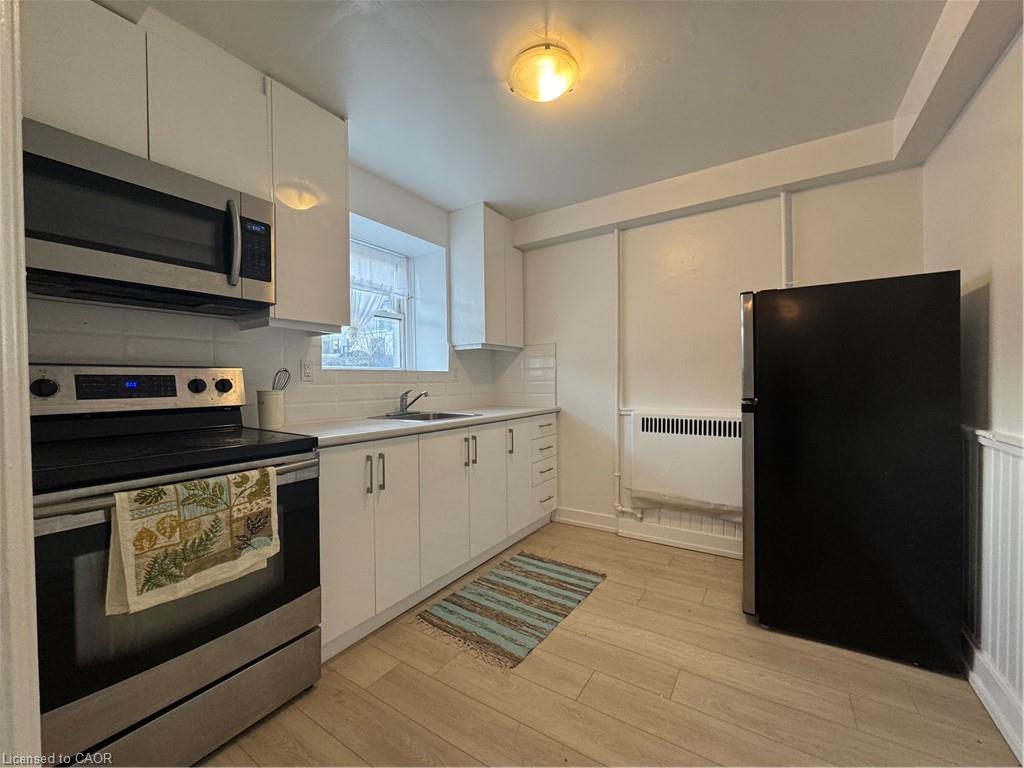 LANDLORD IS GIVING ONE MONTH RENT FREE. Located just steps away from Downtown Kitchener, this recently updated 1 bedroom unit features a sizeable living area complete with large windows throughout, stainless steel appliances, and even a gas fireplace in each unit. This well kept building also has parking included for each unit, and card activated on-site laundry (no coins needed).