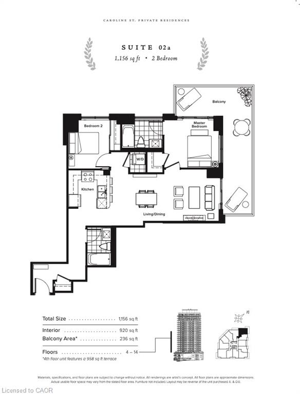 Rare opportunity in Uptown Waterloo's premier condominium address. With an emphasis on upscale living and luxury finishes, 155 Caroline holds a unique place in the market. Suite 502 is a East facing two bedroom 2 full baths that offers a carpet free interior, tasteful upgrades throughout and is set to impress thanks to a fresh open concept floor plan. The kitchen is home to a helpful kitchen breakfast peninsula, warm toned shaker style cabinetry, granite counters and a complimentary tile backsplash. The abundant cabinetry offers necessary storage while the island doubles both as a perfect place to gather or to store pots and pans. Enjoy walk out access to your large east-facing balcony from both the primary bedroom and living room as well as a spacious ensuite. Residents here enjoy market leading amenities including a modern fitness centre, elegant party room, expansive rooftop terrace with BBQ's and putting green, as well as guest suites and concierge. Convenience is another feature here with the LRT, Vincenzo's, Bauer Kitchen and countless other shops and restaurants within minutes. Minutes to both universities and uptown Waterloo .Please arrange your visit today as this incredible unit is unlikely to last!