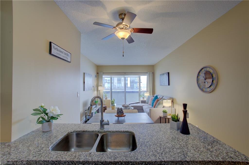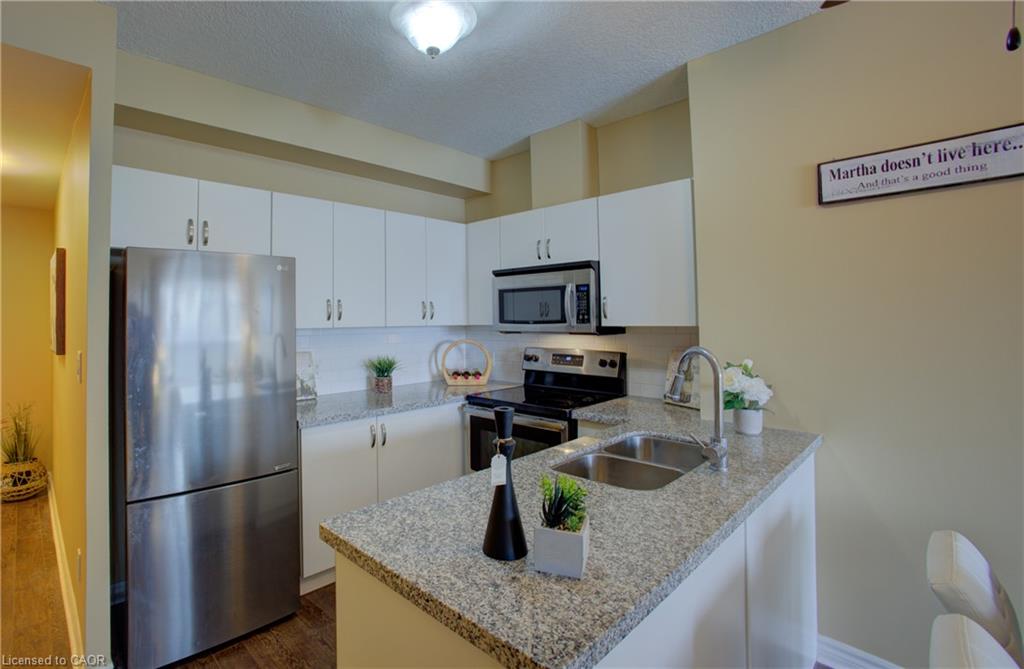 Walking distance to scenic riverfront trails, parks, theatres, Gaslight District, boutique shops, fine dining and casual restaurants, churches, places of worship, 2 public libraries, farmer’s market, schools, UW campus, the pedestrian bridge, public transportation, minutes to 401, and much more. Condo fees include all utilities except hydro (average $50/month), all amenities are free except the guest suite for cleaning fees. Offers an awesome fitness centre overlooking Cambridge 24/7, Guest Suite, Party Room with walkout to an impressive rooftop terrace and BBQs, another sitting area with fireplace overlooking the stunning Garden Terrace, and lounging area overlooking the Grand River. This building has a community living feel with all the social activities for various events including Christmas dinner/New Year celebrations, games night, gardening, book club, and much more. Secured entry building with security cameras.
