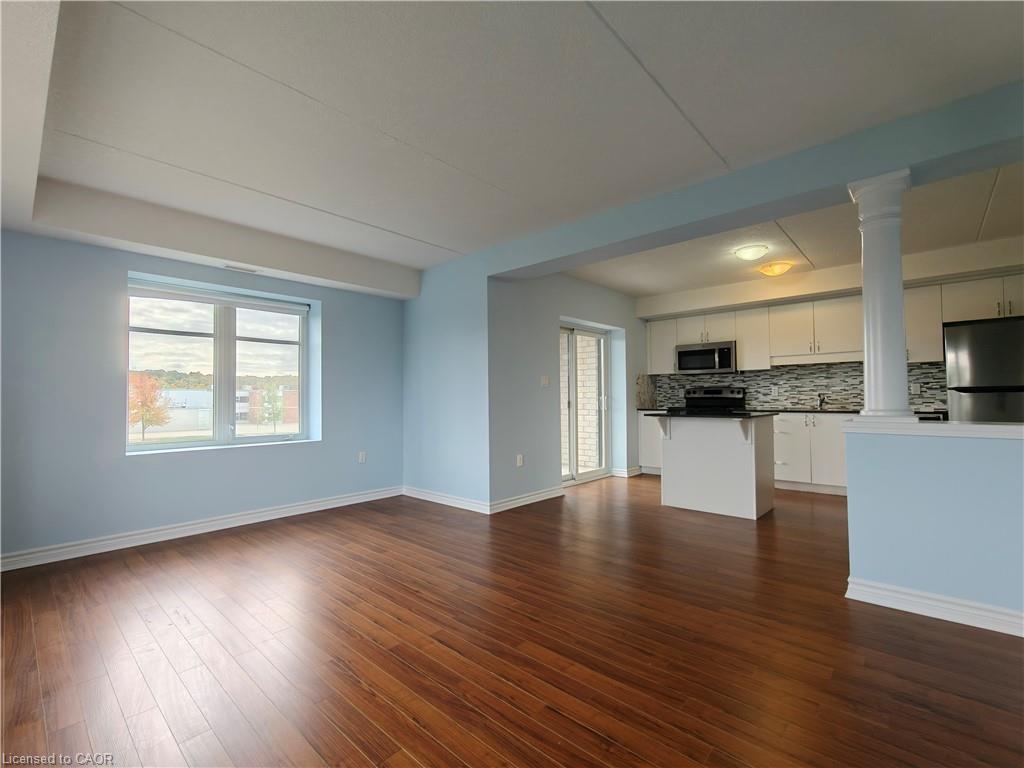 Experience luxury living in this immaculate 1,100-sqft, 2-bedroom, 2-bathroom condo perched on the 5th floor, showcasing bright floor-to-ceiling windows, elegant solid flooring, and a private balcony off the kitchen. Designed for comfort and convenience, the suite features premium appliances including a new LG washer/dryer (2025), LG fridge (2024), stove, dishwasher, and microwave with integrated hood fan. Enjoy secure building amenities such as indoor bicycle storage, a stylish party room, and outdoor BBQ facilities. Perfectly situated in prestigious Laurelwood, this residence backs onto the sports fields of top-ranked Abraham Erb PS and Sir John A. Macdonald SS, and is steps to Laurelwood Commons Plaza, YMCA, scenic trails, and public transit.
