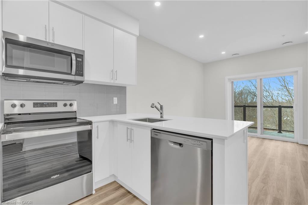 Welcome to Unit 503 at 1100 Lackner Place. Available immediately, this brand new top floor suite offers modern living with peaceful green space views. This never lived in 1 bedroom, 1 bathroom condo features a bright and functional open-concept layout.The contemporary kitchen includes quartz countertops, a stylish backsplash, stainless steel appliances, and ample storage. The living and dining area is filled with natural light and opens onto a private balcony overlooking the trees. A perfect spot to unwind and enjoy the quiet surroundings. Additional conveniences include in-suite laundry, a same floor storage locker, and one parking space. The building also offers a large party room for gatherings, plus visitor parking for added ease. Located in a highly desirable neighbourhood surrounded by trails, parks, and schools, with easy access to shopping, restaurants, everyday amenities, public transit and highways. Book your showing today!