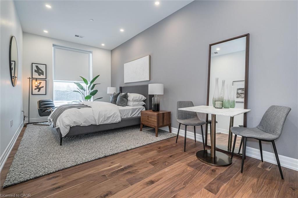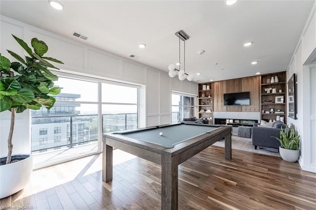 Situated in the prestigious Gordon Square Towers, Suite 505 is an exceptional executive 2 bedroom + den corner residence that is a show stopper! Designed for those who value elevated living, this luxurious condominium showcases floor-to-ceiling windows framing breathtaking views from every room, flooding the space with natural light and highlighting the soaring ceilings and rich engineered hardwood . The beautifully appointed kitchen flows effortlessly into the open-concept living area, creating a refined yet comfortable setting ideal for entertaining, working from home, or simply unwinding at the end of the day. The expansive primary suite offers a peaceful retreat with a gorgeous ensuite, while the versatile den provides flexibility as a home office, guest space, or media room. Perfectly suited for professionals, down sizers seeking turnkey luxury, or executive buyers craving low-maintenance living without compromise. Residents of 1800 Gordon enjoy an unmatched lifestyle with thoughtfully curated amenities including a fitness centre, golf simulator, and an impressive SkyLounge with billiards and a wet bar, plus a lovely guest suite, all designed to extend living beyond the suite itself. Set in South Guelph's most sought-after, amenity-rich neighbourhood, this remarkable residence offers a rare blend of sophistication, convenience, and community - a truly elevated way of life.