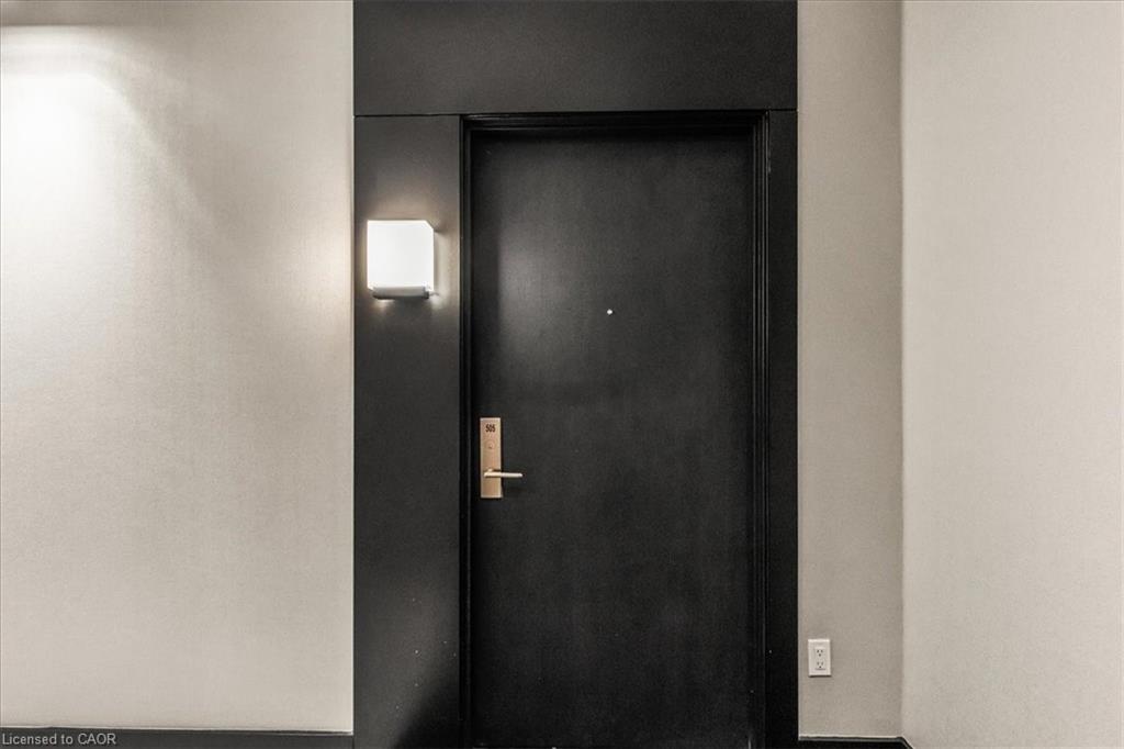 Elite DTK condo! 505 maximizes utility of the space and achieves a grand feel with the tall ceilings, open concept layout, and unobstructed easterly Kitchener skyline views. This unit sits at the same level as the roof top patio with BBQ access just down the hall. The eat in kitchen with center island, contemporary cabinetry, stainless steel appliances, and quartz countertops is open to the versatile living room space, which sits parallel to the bedroom and both overlook the 204 sq ft private terrace, bringing the total indoor/outdoor size of the unit to 675 sq ft. Click flooring flows throughout the unit. One of the most successfully integrated condo buildings in the downtown core, reconstructing the John Forsyth Shirt Company, Duke Street level façade & capturing the historic landmark while moving the city forward with urban renewal. The building amenities are impressive; a clean and modern lobby with a full-time concierge service, comfortable sitting spaces and open to the ground level state of the art fitness center, complete with heavy bags and exercise bikes surrounded by windows connecting you to the outdoors.