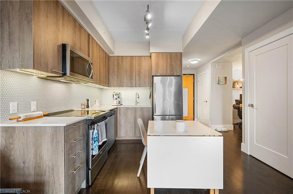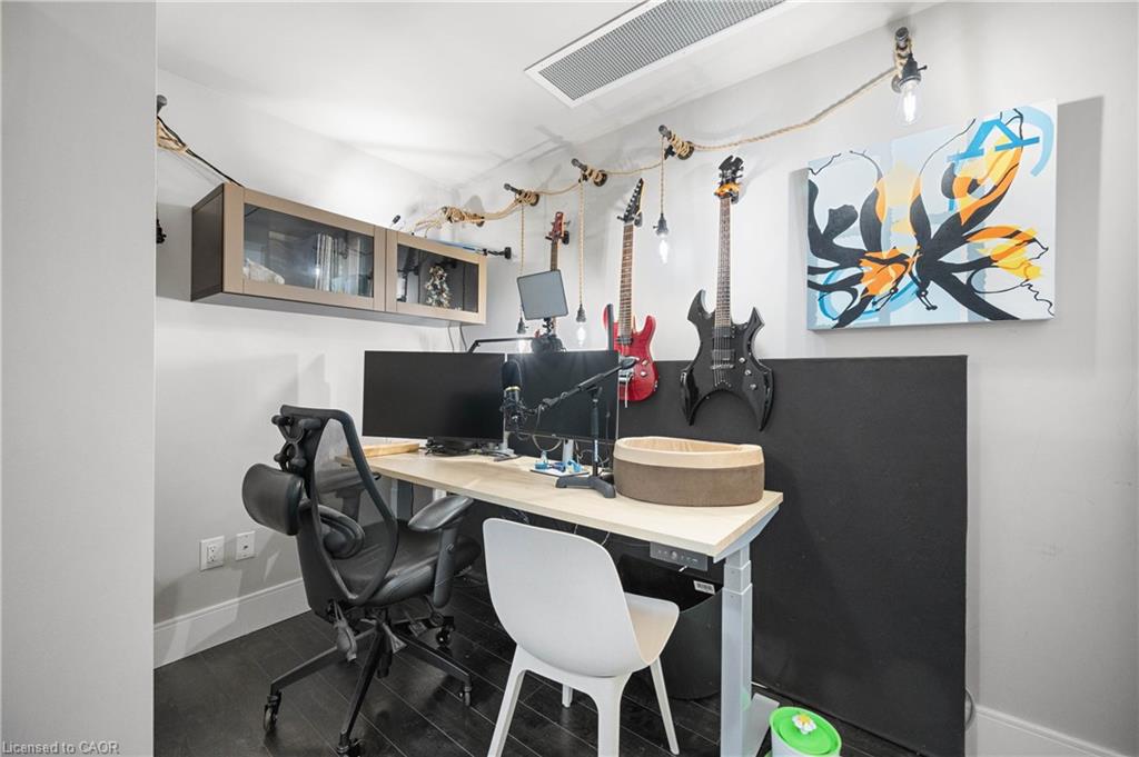 Bright and modern 655 sq. ft. condo in one of Kitchener-Waterloo’s most connected neighbourhood. Ideal for first time buyers or downsizers, this is the lowest-priced suite of its kind currently on the market. Enjoy the convenience of being just a 10-minute drive to all major campuses (University of Waterloo, Laurier, and Conestoga College), with parks, trails, art venues, transit lines (GO, LRT), and downtown Kitchener all just steps from your door. Inside, you'll find a smart, open-concept layout featuring one bedroom plus den, two full bathrooms, in-unit laundry, and a private balcony. The den is perfect for a home office, guest room, or creative flex space. Highlights include: Underground parking spot right across from the elevator. Dedicated storage locker. Building amenities like a fitness studio and party lounge. Energy-efficient geothermal system for heating and cooling.