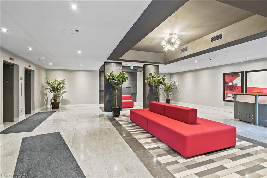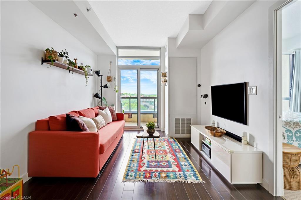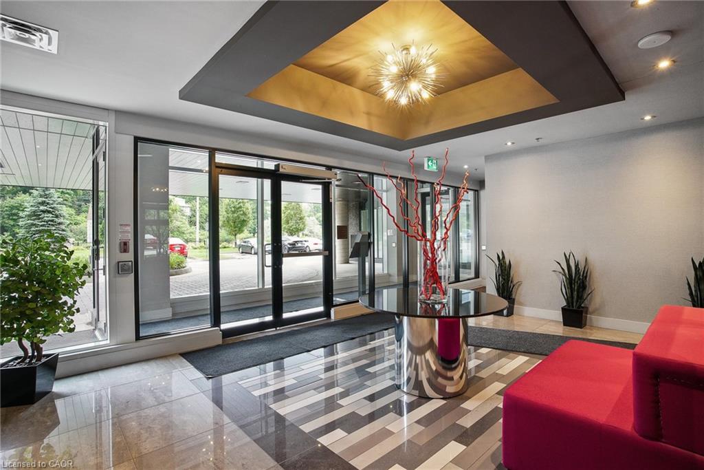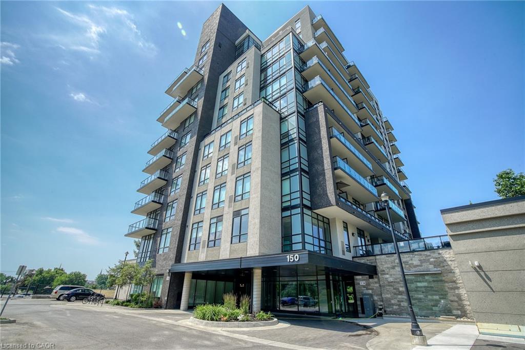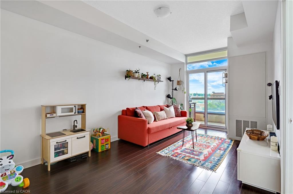 STUNNING VIEWS! 687 Sqft unit, one bedroom plus Den, one bath, open concept great room and kitchen, and 125 Sqft. balcony. Bright and sunny unit with floor-to-ceiling windows that provide an unobstructed view of the city core and the fall-colours, and view of the Grand River and the multiple bridges of the historic and architecturally renowned downtown Galt as well as magnificent sunsets. Walking distance to trails, parks, theatres, boutique shopping, restaurants, churches, places of worship, 2 public libraries, farmer’s market, schools, UW campus, the pedestrian bridge, the Gaslight district, public transportation, minutes to 401, and much more. Condo fees include all utilities except hydro (average $50/month), all amenities are free except the guest suite $75 for 1st night for cleaning. Offers an awesome fitness centre 24/7, Guest Suite, Party Room with walkout to an impressive Garden Terrace with BBQs and dining area for all your entertaining needs, and lounging area overlooking the Grand River. This building has a community living feel with all the social activities for various events including Christmas dinner/New Year celebrations, games night, gardening, book club, and much more. Secured entry building with security cameras.