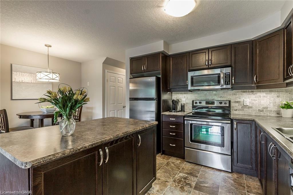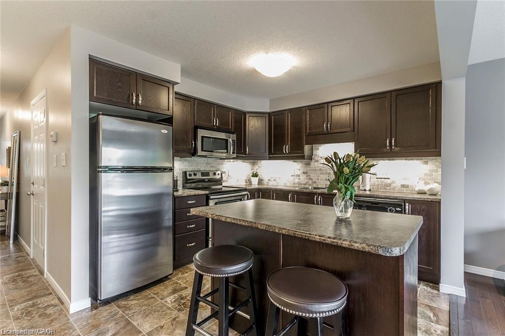 Beautifully maintained townhouse for rent in the desirable Chicopee Hills neighbourhood, available May 1, 2026, at $2,700/month plus utilities. Step into a bright and welcoming foyer with a convenient 2-piece powder room, leading into a spacious open-concept main floor ideal for modern living. The upgraded kitchen features stainless steel appliances, stylish backsplash, and a large island offering additional seating and storage - perfect for entertaining or everyday meals. The expansive living room easily accommodates full-sized furnishings and opens through oversized patio doors to a private backyard retreat. Enjoy a fully fenced yard with a generous concrete patio and no rear neighbours, offering exceptional privacy. Upstairs, you’ll find three generously sized bedrooms, a versatile office nook, and convenient second-floor laundry (washer and dryer included). The primary bedroom is filled with natural light and offers double closets with ensuite privileges. The luxurious main bathroom includes a separate shower and a relaxing soaker tub. The unfinished basement provides flexible space -ideal for a play area, home gym, recreation room, or additional storage - and includes a cold room, perfect for wine or pantry items. Unbeatable location close to the expressway, walking trails, schools, and shopping. Single-car garage plus single-wide driveway parking (2 spaces total). Lease Terms: Standard 12-month lease; Non-smokers only; No pets preferred; Credit check, rental application, and first & last month’s rent required.