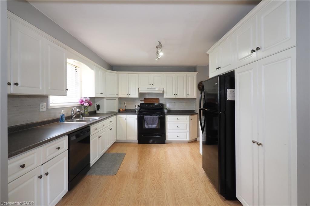Be a part of a community in this desirable Hespeler neighbourhood. Welcome to 51 Memory Lane Cambridge. This single detached raised bungalow is set up to accommodate all of your family needs offering 3 bedrooms on the main, plus 2 more if needed downstairs. The 3rd is original bedroom but flexible as a den. There is a door instead of a window. Formal living and dining room combined, dream size kitchen featuring a built-in dishwasher, pantry, microwave shelf, extended counter and wall tile. Main 4pc bath with updated vanity. The front foyer has a split entrance with stairs to the basement offering endless possibilities to convert to a separate in-law suite or enjoy the newly renovated party size rec room. There are 2 more bedrooms down along with a 4pc bath combo highlighted by a corner jetted tub and shower. Updates to mention, furnace and CAC 2017, all basement flooring carpet free throughout. Single car garage has 2 doors front and back which you can open on the rear patio for cover. Concrete drive for 2 cars, fully fenced yard. Walk through the cross walk just steps to Silverheights Public and St Gabriel Separate is blocks away. Handy to parks, trails, shopping amenities. UNBEATABLE CONNECTION FOR 401 COMMUTERS MINUTES TO HWY 24. Available for first week of December possession before the holidays. Call your Agent today to view