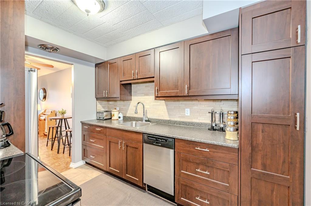 Welcome to Unit #511 at 105 Conroy Crescent in Guelph, a charming and well-kept condominium offering 823 square feet of comfortable living space. Nestled within a friendly, vibrant community, this unit is ideal for those seeking both convenience and tranquility. Inside, you'll find warm hardwood flooring throughout, creating a cozy and inviting ambiance all year round. The kitchen is thoughtfully equipped with stainless steel appliances, including a built-in microwave hood fan, dishwasher, refrigerator, and a double oven/stove perfect for everyday cooking or entertaining guests. Step out onto your private balcony to enjoy a quiet moment or unwind at the end of the day. The building also provides convenient access to laundry facilities and plenty of parking. Monthly condo fees include essential services and maintenance, ensuring stress-free living. Located in a desirable neighbourhood, this home is surrounded by lush green spaces, scenic trails, shopping, schools, and excellent public transit options. Whether you're a first-time homebuyer or looking to downsize, this welcoming unit offers a wonderful opportunity to enjoy both nature and city amenities. Don't miss your chance to make it yours!