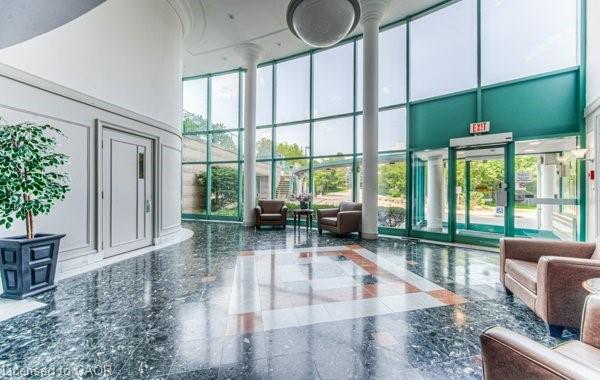 Welcome to THE ATRIUMS, a prestigious condominium in Waterloo! This unit is a very clean and carpet less, in-unit laundry, 2 bedrooms, 2 bathrooms, one garage and exceptional amenities that includes: top roof terrace, party room, guest suite, library, workshop and beautiful main entry hall. This building is well-maintained & located close to shopping, schools, restaurants and easy access to highway.