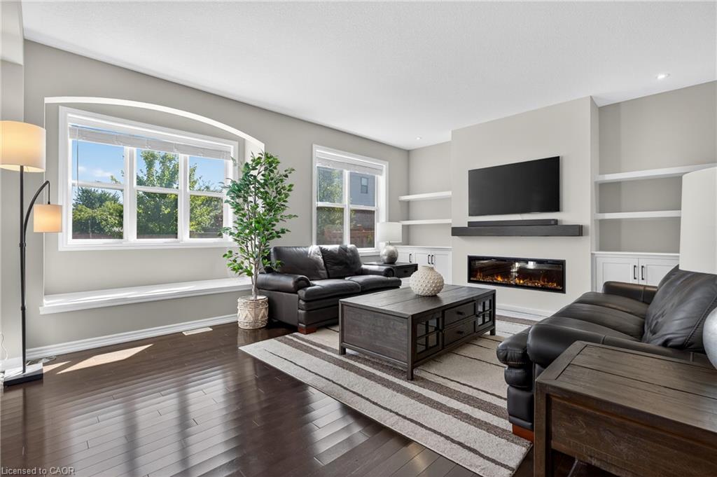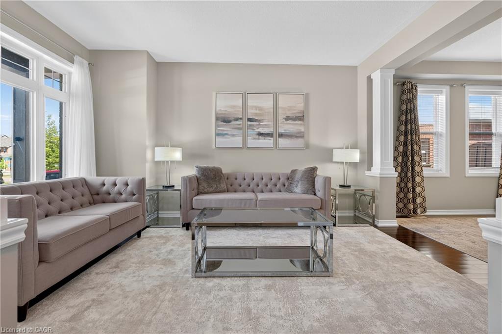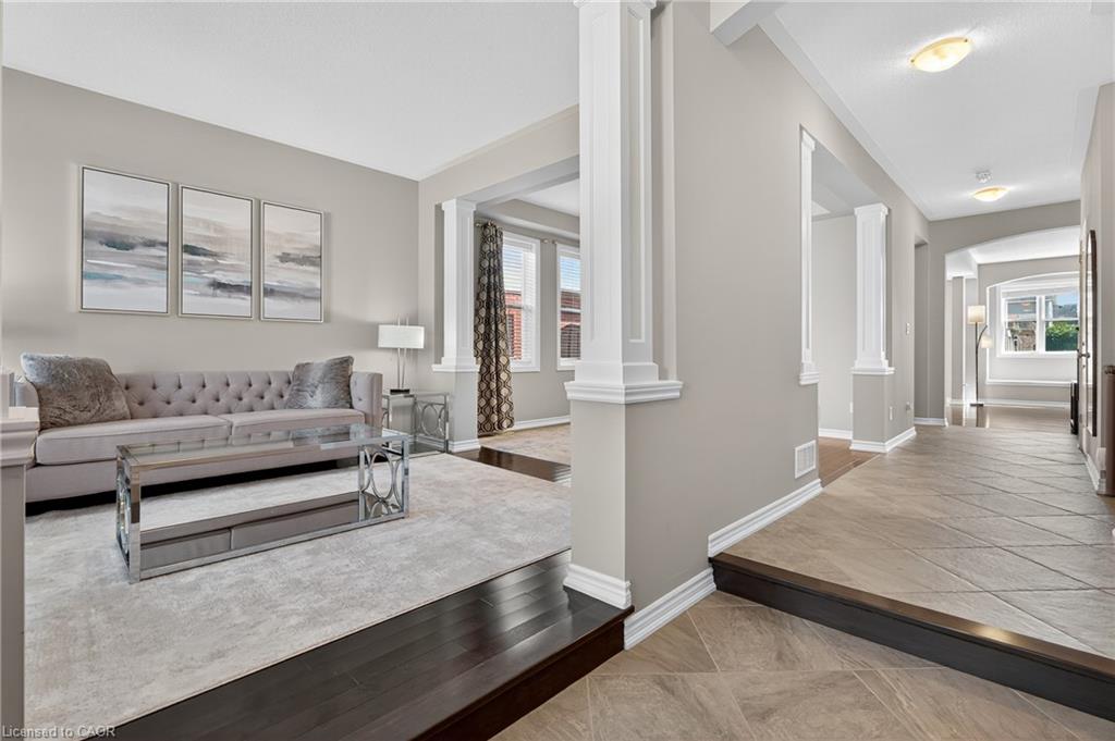 Welcome to 52 Tremaine Drive, a stunning & luxurious home located in one of Kitchener’s most desirable Lackner wood Area. Drive into this beautiful house with elegant exterior finishes & thoughtfully designed layout that carries throughout. This 4-bedroom, 3-bathroom home offers well-planned living space, including 4 car parkings (2 garage + 2 driveway). Step inside the welcoming foyer with soaring 9.5 ft ceilings & rich hardwood flooring. The front living room is bright & airy, featuring a wall of windows that floods the space with natural light. The fully upgraded kitchen boasts granite countertops, a chic backsplash, under-cabinet lighting, SS Appliances & a generous centre island. Adjacent to the kitchen is the breakfast area, ideal for enjoying your morning coffee, while the formal dining room provides a perfect setting for hosting family dinners & entertaining guests. The family room is warm & inviting, featuring custom wall shelving for décor & a cozy fireplace that anchors the space beautifully. Heading upstairs, you’ll find a convenient office room with extra-high ceilings, an ideal spot for remote work or study. The upper level offers 4 spacious bedrooms, including the impressive primary suite with a walk-in closet & a luxurious ensuite bath. The remaining 3 bedrooms are generously sized with shared 4pc bathroom. Adding to the convenience is the upstairs laundry room, eliminating the need to carry loads between floors. The basement offers incredible potential with its own separate Side Entrance, Rough-in for bathroom & Framing work completed, making it ideal for a future duplex or in-law suite. Step outside to the fully fenced backyard, complete with a patio & plenty of green space for gardening, play or relaxation. With gated access on both sides of the home, the yard is practical & secure. This home is located close to top-rated schools, parks, Chicopee Ski Hill, shopping, dining & more. Don’t miss the chance, Book your private showing today!