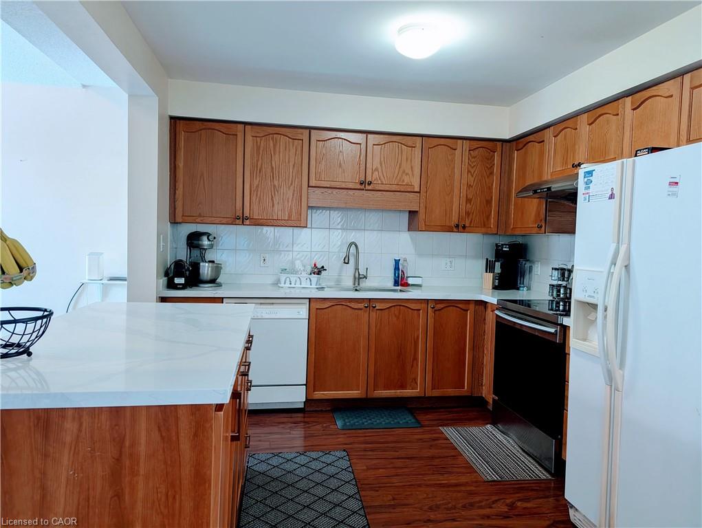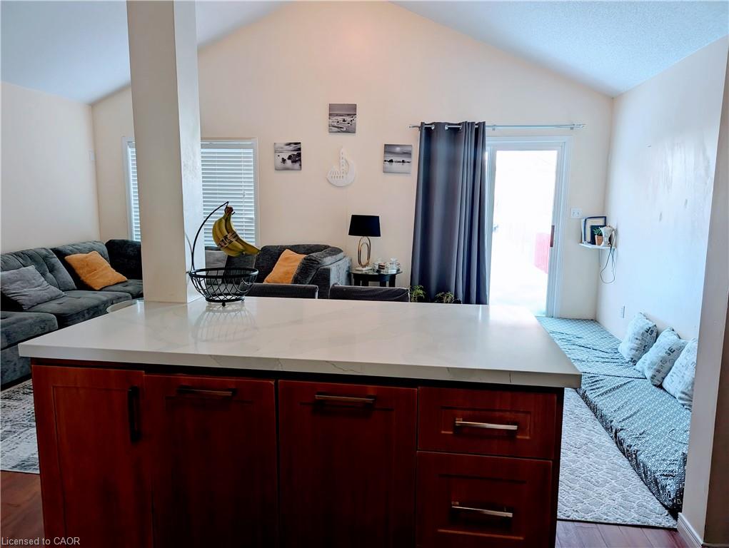 Welcome to 520 Chablis Drive, Waterloo! Located in one of Waterloo’s most desirable, family-friendly, calm, and quiet neighborhoods, this beautiful carpet-free home offers exceptional convenience—just minutes to The Boardwalk, Costco, shopping, schools, and all major amenities. The main floor features an open-concept layout with a spacious kitchen, cathedral ceiling in the great room, and a sliding door walkout to the back deck and landscaped backyard. The welcoming front entrance opens into a bright hallway leading to the living room. To the right is a powder room and the kitchen; to the left is a dedicated dining room—perfect for family gatherings and entertaining. The second floor offers 3 bedrooms, including a generous primary bedroom with its own ensuite. Two additional good-sized bedrooms share a full main bathroom. The fully finished basement adds valuable living space with a large recreation room complete with countertop, sink, and cabinetry—ideal for entertaining or extended family. A full bathroom, cold cellar, laundry area, and utility room complete the lower level. Upgrades & Features: Kitchen countertop and island with quartz, interior paint (2023), Washer/Dryer/Stove (2022), Two cooking lines: Hydro/Gas, Air Conditioner (2022), Water Softener (2022), Furnace (2018), Roof (2017), Concrete driveway (2024), Properly insulated cold room. Garage door remote sold as is. A wonderful opportunity to own a well-maintained home in a prime Waterloo location!