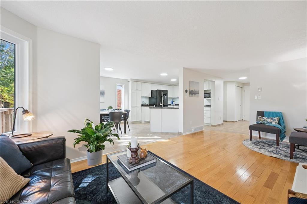 Welcome to this bright and spacious 3+1 bedroom, 2.5 bath home located on a quiet street in a highly desirable Waterloo East neighbourhood close to schools, parks, shopping, & convenient highway access. The open-concept main floor features a guest bathroom, hardwood & tile flooring, a gas fireplace, an updated kitchen & sliders from the dining area leading to a new deck & patio overlooking the fully fenced backyard with storage shed, ideal for outdoor entertaining. Upstairs, you’ll find new luxury click vinyl flooring, a large primary bedroom with walk-in closet, & an updated main bath complete with a soaker tub, separate shower, & double sinks. A second bedroom also features a walk-in closet, providing ample storage. The finished basement offers a 4th bedroom, a 3-piece bathroom, & a versatile space perfect for a home office or workout area. Additional highlights include a double-wide driveway with parking for four vehicles, a 1.5-car garage with Tesla charger, rough-in for central vac, an on-demand water heater, a gas-line to your BBQ & a newer furnace & A/C (2017). This well-maintained home offers comfort, efficiency, and modern updates throughout—an excellent opportunity in a sought-after Waterloo location!