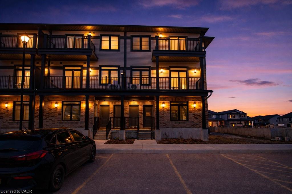 Welcome to Wallaceton, where modern living meets community charm. This stylish urban townhome offers over 1,060 sq. ft. of thoughtfully designed space. With open-concept flow and upgraded finishes, it’s the perfect blend of comfort and contemporary design. On the main level, sunlight fills the spacious great room with upgraded laminate flooring—ideal for relaxing or entertaining. The sleek kitchen features stainless steel appliances and an oversized breakfast island with upgraded quartz countertops that brings people together. A convenient 2-piece bath and in-suite laundry complete this level. Step outside to a large balcony and enjoy fresh air at any time of day. Upstairs, retreat to the primary bedroom with its own 3-piece ensuite and a private balcony, the perfect spot for morning coffee or evening wine. A second bedroom and a 4-piece bath provide flexibility for family, guests, or a home office. Set in the heart of Wallaceton, you’ll love being steps from RBJ Schlegel Park—one of Kitchener’s premier recreation destinations with sports fields, walking trails, and year-round activities. The neighbourhood blends tree-lined streets, playgrounds, and community greenspace with the everyday convenience of nearby shops, restaurants, and top-rated schools. With two balconies, a modern design, and a location that offers both lifestyle and convenience, this home is move-in ready for its next chapter. Bedroom images virtually staged. Don’t miss this opportunity to own in one of Kitchener’s most sought-after communities—book your showing today!