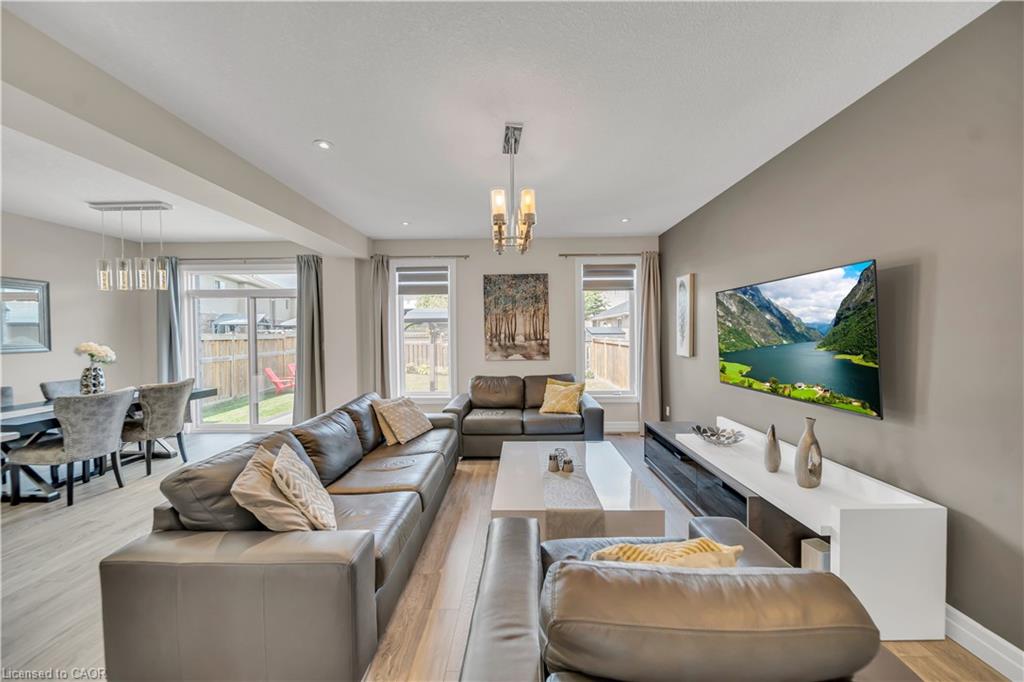 Welcome to 536 Landgren Court, Kitchener – A Showpiece in Lackner Woods! Drive up to this stunning residence and be immediately captivated by its striking curb appeal, lush professional landscaping and spacious 40 x 111 ft lot. With parking for four vehicles, two in the garage with epoxy floor, two on the exposed concrete driveway with a sidewalk extension this home checks every box. Step inside the welcoming foyer with 9 ft ceilings and prepare to be impressed. The open-concept living and dining area is bathed in natural light from oversized windows. Luxury laminate floors and upgraded designer light fixtures elevate the main level. The chef’s kitchen showcases sleek black stainless steel appliances, a chic backsplash, a massive center island, abundant cabinetry, and a walk-in pantry with direct garage access. The thoughtful design continues with a stylish 2-pc powder room completing the main floor. Upstairs, discover the grand primary suite, featuring a large walk-in closet and a private 4-pc ensuite with a quartz vanity. Two additional bedrooms, each with custom built-in closet organizers and California shutters, share a spacious 4-pc bathroom. The wide hallway enhances the sense of openness. The finished basement (2022) offers even more living space with a huge recreation room and convenient 2-pc bathroom (already roughed in for a future shower). Perfect for movie nights, a play space or a stylish home office, with plenty of extra storage. Step outside into the fully fenced backyard providing exceptional privacy, featuring a stamped concrete patio & a charming pergola. This generous outdoor space is ideal for summer BBQs, family gatherings, or simply relaxing. Additional features include an air exchanger, ensuring fresh air circulation throughout the home year-round. Prime location near the Grand River, scenic trails, schools, bus routes and public transit. This is not just a home, it’s a lifestyle, where every detail delights. Book your private showing today!