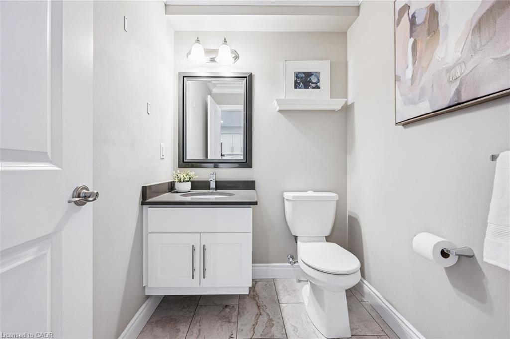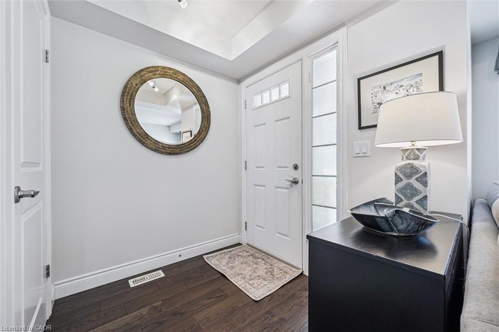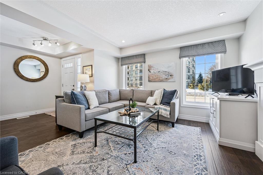 Exceptionally maintained and thoughtfully curated, 54-635 Saginaw Parkway is an executive townhome in North Galt offering refined finishes, generous living space, and a prime location close to schools, shopping, and the 401. Offering approximately 2,200 sq ft of finished living space (1,750 sq ft above grade plus a 450 sq ft finished walkout basement), this home blends style and functionality across all three levels. The bright, open-concept main floor features engineered hardwood flooring and a stunning modern kitchen with granite countertops, a large centre island, soft-close cabinetry, under mount lighting, stylish backsplash, stainless steel appliances, and elegant pendant lighting, flowing seamlessly into the spacious family room with a cozy gas fireplace, alongside a generous dining area and versatile bonus space ideal for a home office or sitting area. A stylish 2-piece powder room and double doors leading to a private terrace complete the main level. Upstairs, you'll find three generously sized bedrooms with hardwood flooring, including a primary suite with a walk-in closet and a beautifully finished 3-piece ensuite with double vanity and tiled shower, as well as convenient upper-level laundry and a 4-piece family bath. The fully finished walkout basement adds exceptional value with custom built-in cabinetry, a spacious rec room, dedicated office area, a 2-piece bathroom, inside access to the garage, and a welcoming foyer with double closets, making this move-in-ready home an exceptional opportunity for executive townhome living.