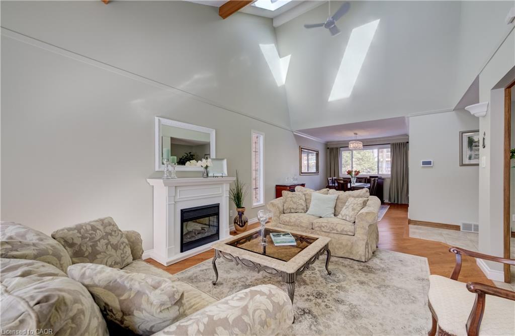 Welcome to this custom built home based on a Viceroy model. This design balances open concept living with defined spaces. Double wide interlock driveway with double car garage for lots of parking. The skylight and vaulted ceiling in the living area allows natural light to pour in. Wood beams, fireplace, and hardwood floors make this a stunning living room. The open concept living and dining spaces are great for entertaining. Harwood flooring runs throughout this area. Recently updated, the kitchen has beautiful quartz counters, lots of cabinets, a pantry and appliance garage. Pull up a stool at the breakfast bar or enjoy your coffee looking at the view through the floor to ceiling windows. Outside among the established, stunning landscaping there is a high-quality shed for extra storage. Dine in the fully enclosed gazebo with the included table and chairs. The pathways wind through the gardens. There's also a main floor family room with a walkout to the patio. The main floor laundry and a bath complete the main floor. This large home features a primary with double closets and a full ensuite bath. Brand new vanity with double sinks in the main bath. Cozy rec room with oak accent wall and ceiling along with a fireplace for those cold winter nights. The adjacent space offers options such as a workout, play or games area. Need lots of storage? Not an issue in this large home. An unexpected bonus is the finished garage with epoxy floor and built in cabinets, perfect for car enthusiasts or for a workroom. Carefully considered details throughout the home make it practical as well as beautiful. Don’t miss your opportunity to live in this family friendly neighbourhood, close to walking trails, schools and amenities. Furnace 2019, Air conditioning 2018, roof 2007(35 year shingles), siding repainted in 2025, water softener 2025. All appliances included.