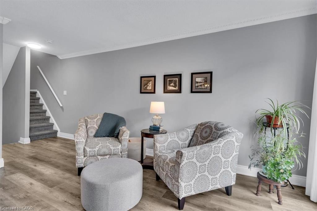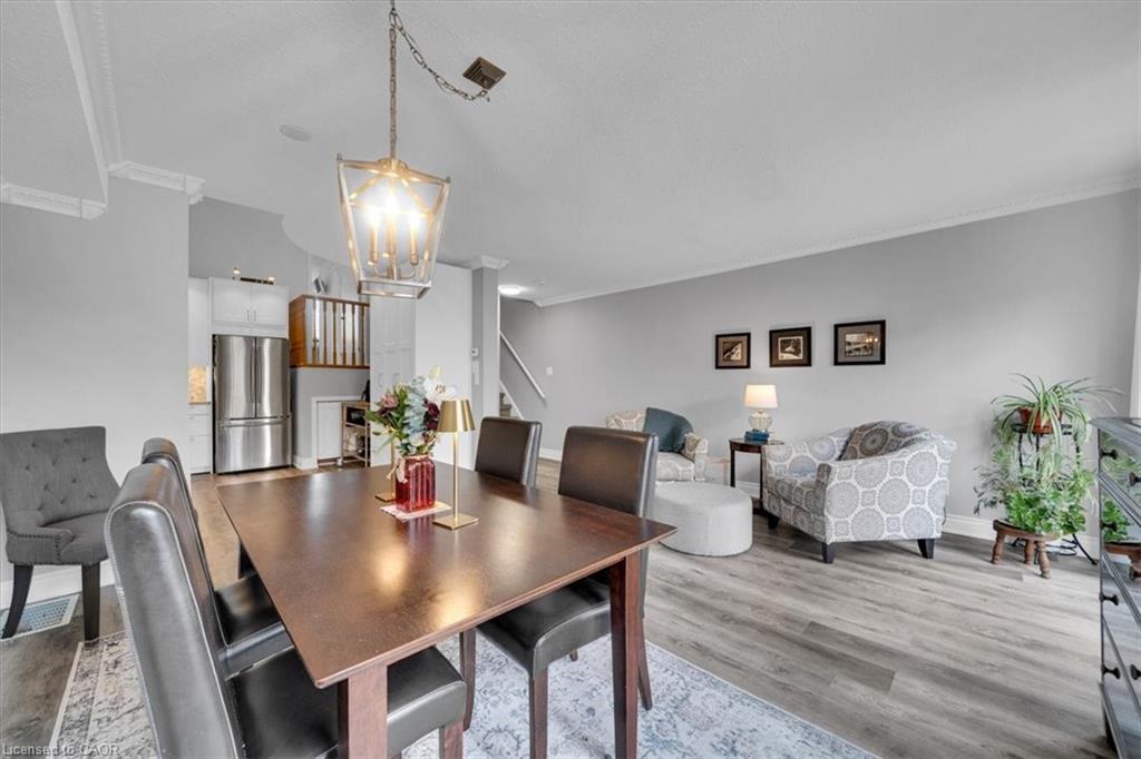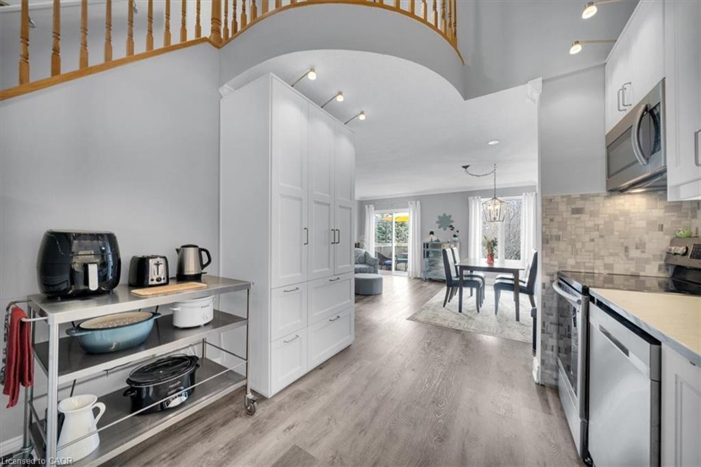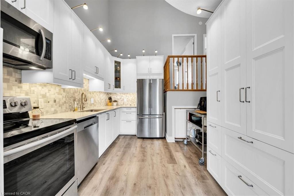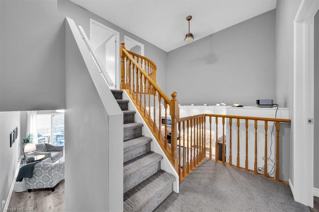 This is the one! Amazing value! Modern, updated, bright, & move in ready! 3 bedrooms, 2 bathrooms, single car garage, single car driveway, with more spaces available for rent, as well as a lot of visitor parking right across from the home! Beautiful front porch leading into the foyer with coat closet, and 2 piece bathroom, the main level features a open and spacious living room with backyard deck access, dining room, and the beautiful new kitchen done in 2019 with white cabinetry, stainless steel appliances, beautiful backsplash & quartz countertop! So much storage and a beautiful pantry, plus this storage and utility cart, perfect bonus for when baking or entertaining guests. There is a little storage area on this floor as well here. The kitchen ceiling height is extraordinary, 16 feet 8 inches high! Open to the top level of the home with a rounded balcony feel from the top level looking down. 3 spacious bedrooms with a ensuite privilege bathroom off the primary bedroom as well as a office or reading book in the primary bedroom as well, it's ideal! The walkout basement features a rec room with plenty of space for the family to enjoy, and a sliding patio door the lower deck, so nice and bright. The laundry room and bonus storage room complete this level. This home is steps to shopping, parks, trails, the Grand River, and a very short drive to the 401! It's an amazing home in an amazing location! Book your showing ASAP to ensure you do not miss out! **See video for full tour!!**