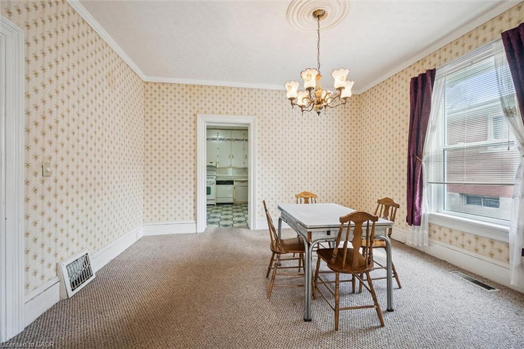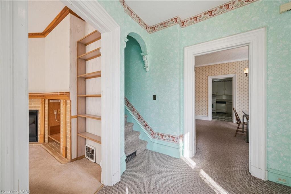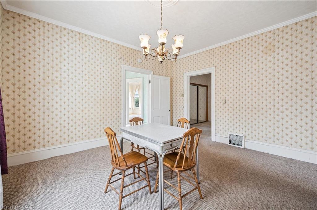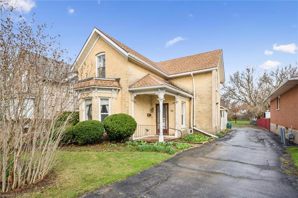 Welcome to 56 McNaughton Street, a truly charming piece of Cambridge history. Built in 1888, this solid brick home offers timeless character and incredible potential for those looking to make it their own. Featuring four bedrooms, including a convenient main floor primary, this home offers a flexible layout ideal for families or those seeking main-level living. Upstairs, you’ll find three additional bedrooms, perfect for kids, guests, or home office space. A cozy gas fireplace anchors the living room, creating a warm and inviting atmosphere. The interior is ready for renovation, offering a rare opportunity to restore and personalize a historic home while preserving its character. Despite its vintage condition, the property has been well maintained and is in great overall shape. Bring your soccer ball, shoes, and nets or build your own personal ice rink on this nearly 1/4 acre, 273 ft deep lot! The backyard is definitely a standout feature, spacious, private, and bordered by mature trees, with fencing on both sides. It’s an ideal space for entertaining, gardening, or simply enjoying the outdoors. Additional highlights include a detached two-car garage, with a little cleaning up, this space can make an excellent workshop for cars, wood working, or just about any project. Now how about this addition to the garage... A driveway with parking for up to six vehicles. Need some extra space inside? How about an unfinished basement full of potential for future development. Roof shingles replaced in 2020, main floor windows in 2004, furnace 2015. Located in a sought-after area of Cambridge, this home combines charm, space, and opportunity in one unique package. A rare find for buyers looking to invest in character and create something truly special.