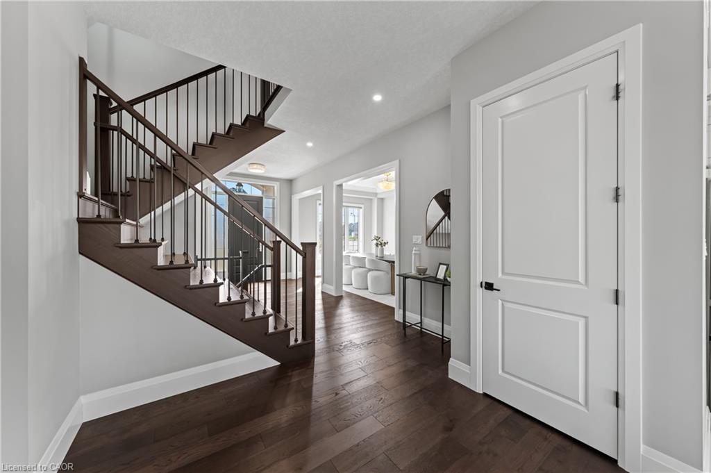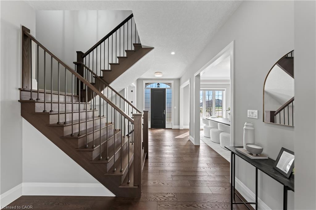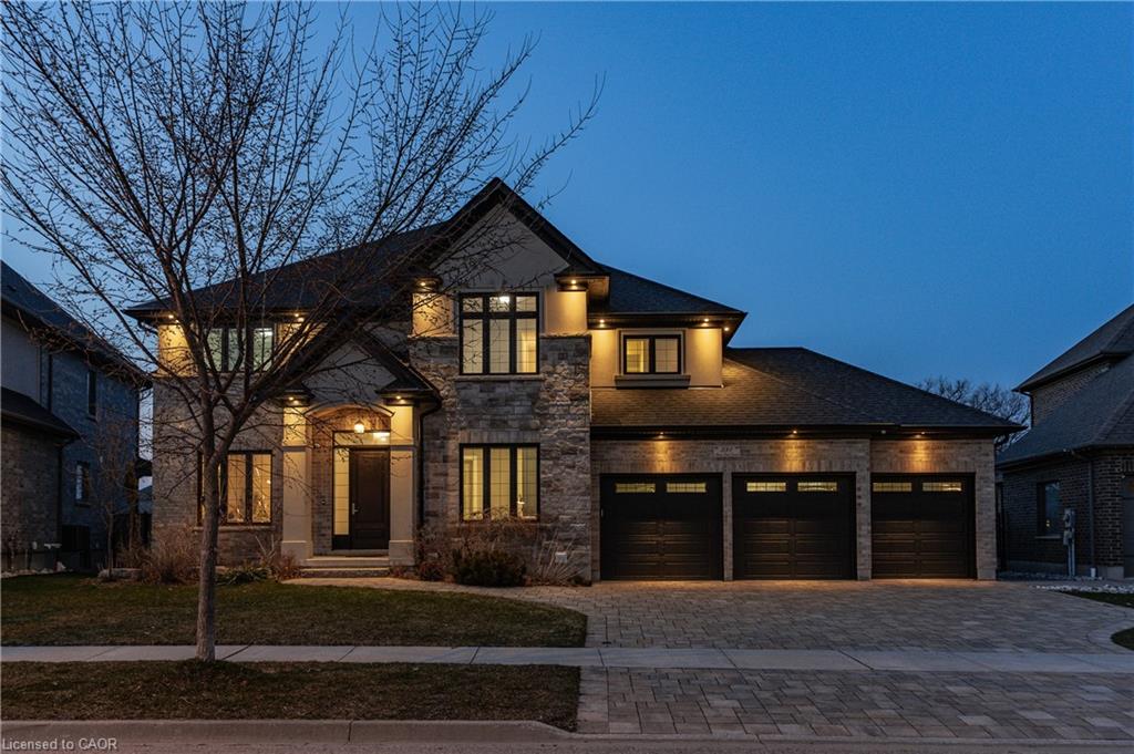 This is truly a rare offering in Carriage Crossing, Waterloo—custom-built luxury with a triple car garage, 72’ wide lot & backing protected forest. Blending elegance, comfort & exceptional craftsmanship, this executive home offers approx. 3,600 SF of beautifully finished above grade living space with 4 bdrms & 4 baths, thoughtfully designed for refined living. Set on an oversized lot, the home showcases timeless architecture, upscale finishes & a flr plan that impresses throughout. A welcoming entry opens to 10’ ceilings, hardwood & porcelain tile flring & designer lighting. A front office/living rm with custom built-ins & a formal dining rm with tray ceiling frame the entry. The dining rm connects to a servery & walk-in pantry, leading into the custom Chervin kitchen with quartz counters, backsplash, lrg island, under-cabinet lighting & premium appliances. The kitchen flows into the breakfast area with access to the covered back porch & opens to the great rm spanning the rear of the home—offering stunning views of the private, forested backyard. The great rm features an electric FP with custom built-ins. Completing the main is a lrg mud rm. Upstairs, the primary suite offers a walk-in closet & spa-like 5-pc ensuite with dual sinks, soaker tub & shower. 3 additional bdrms each feature walk-in closets & ensuite access—1 with a private 3-pc & 2 sharing a 5-pc Jack & Jill, plus upper level laundry. The unfinished lower level offers excellent potential with lrg windows & a bath rough-in—ready to be customized. The exterior is equally impressive with professionally landscaped grounds, interlock driveway, fenced yard & covered porch & patio, all surrounded by mature trees for exceptional privacy. Located in one of Waterloo’s most sought-after communities, steps to trails, parks, top-rated schools, RIM Park & Grey Silo Golf Club, & mins to St. Jacobs Market, universities, shopping & HWY access—this is a rare opportunity to own a truly exceptional home in Carriage Crossing.