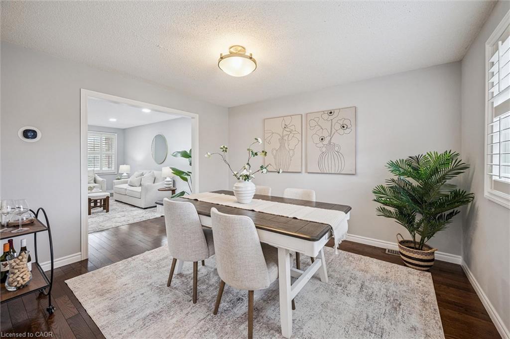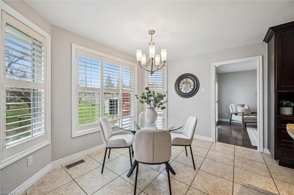 NO REAR NEIGHBOURS! This 4 bedroom home sits on a large 50' x 150' lot! The fantastic backyard which is fully fenced, has a large shed, fruit trees and lots of room for gardening. Upon entering this 2 storey home you will love the circular staircase, ceramic floors and spacious foyer area. To your left is a bright living room with hardwood floors that run into the formal dining room at the back. The kitchen has stainless steel appliances and granite counter tops. The cozy family room has sliding doors to the backyard, hardwood floors, and a fireplace area ready for a gas insert. Finishing off the main floor is a 2 piece bathroom, and a handy laundry room with lots of storage. Upstairs there is a large primary bedroom with walk-in closet, dressing area with built-in vanity and cabinets, and a 4 piece ensuite. You will also appreciate the 3 additional nice size bedrooms with a 4 piece bathroom down the hall. The large basement hosts a 3 piece bathroom, rec room with endless possibilities, a wood fireplace, and a separate room with a large walk-in closet. There is also a storage room with a wall full of cabinets, and a cold room. Also featuring California shutters, a cold room, and of course a double car garage! This all brick home has great curb appeal and is ready for a quick closing!! Located in a great mature area close to the highway, with great schools, shopping, bus routes, a short walk to Shade's Mills Conservation area, and so much more!