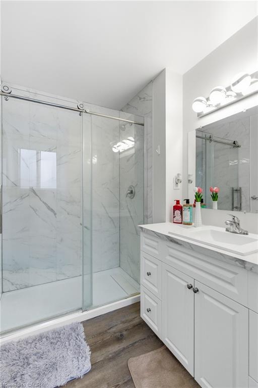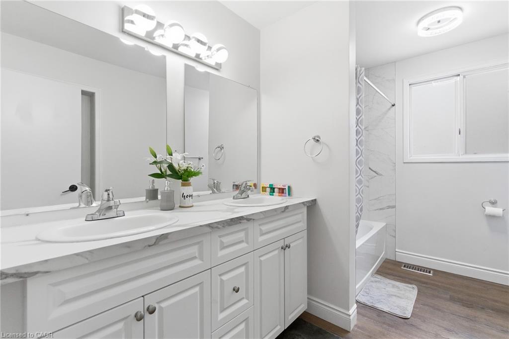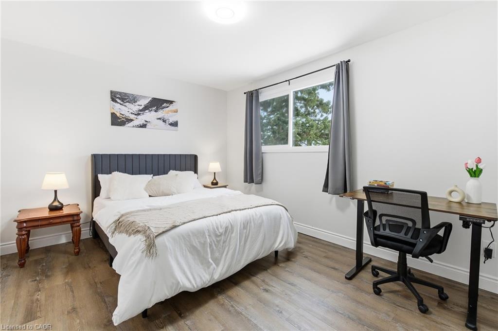 4 Bedroom, 2 Bath furnished house, Ideally located on a quiet street, walking distance to schools, 10-15 min bus ride to bothwaterloo universities, short drive to many reputed employers in the rgion, Conestoga college and Laurel Creek Conservation Area. Open conceptmain kitchen, living and dining areas, Large primary bedroom with ensuite bath and Walk out to a balcony overlooking Large pool size fencedyard and park. The wooded back garden provides privacy and cottage-like living in the city. Total 3-4 parking including one Garage and driveway.Unit has been renovated with new kitchen, SS appliances, LED light fixtures, New bathrooms, decora style light switches and plugs, flooring, trims door handles etc. etc. Central heating and ventilation system including new highefficiency furnace, AC and HRV. Lower unit is separately rented and is not included.