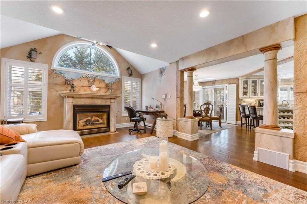 Welcome to 60 Chandos Drive, Kitchener: A Timeless Masterpiece. Step into a home where European elegance meets modern comfort. Situated on an impressive 52 x 143 ft lot, this beautifully maintained detached home showcases quality craftsmanship and thoughtful design. From the moment you arrive, the home’s striking curb appeal stands out, complemented by parking for up to 5 vehicles: 2-car garage, 3-car driveway. Inside, you are welcomed by a grand foyer with soaring ceilings along with Elegant finishes, custom wall details and vintage-style ceiling work. The inviting living room features a cozy gas fireplace, perfect for relaxing or entertaining. The gourmet kitchen offers granite countertops, stainless steel appliances and oak cabinetry with ample storage. A wine display with glass cabinetry adds a sophisticated touch. Adjacent is the dining area, perfect for family gatherings. The main floor also features a laundry room. Upstairs, there are 3 generously sized bedrooms. The primary suite includes a walk-in closet with organizers and a luxurious 5pc ensuite with jacuzzi tub and separate shower. The additional bedrooms are bright and complemented by another 4pc bathroom. The fully finished basement offers extra living space with a large rec room with gas fireplace, a bedroom or office, full bathroom and a wet bar, perfect for throwing parties. There is also walk-up access to the garage. Step outside to an exceptional, fully fenced backyard, finished with low-maintenance concrete, it features a composite deck with glass railings, gazebo seating area, above-ground pool, storage shed and decorative pond with waterfall, creating a peaceful outdoor oasis. Additional upgrades include a generator plug at the electrical panel for added convenience during power outages. Ideally located just minutes from Chicopee Ski & Summer Resort, the Grand River, scenic trails, Highway 401, and public transit. This extraordinary home truly checks every box. Book your private showing today.