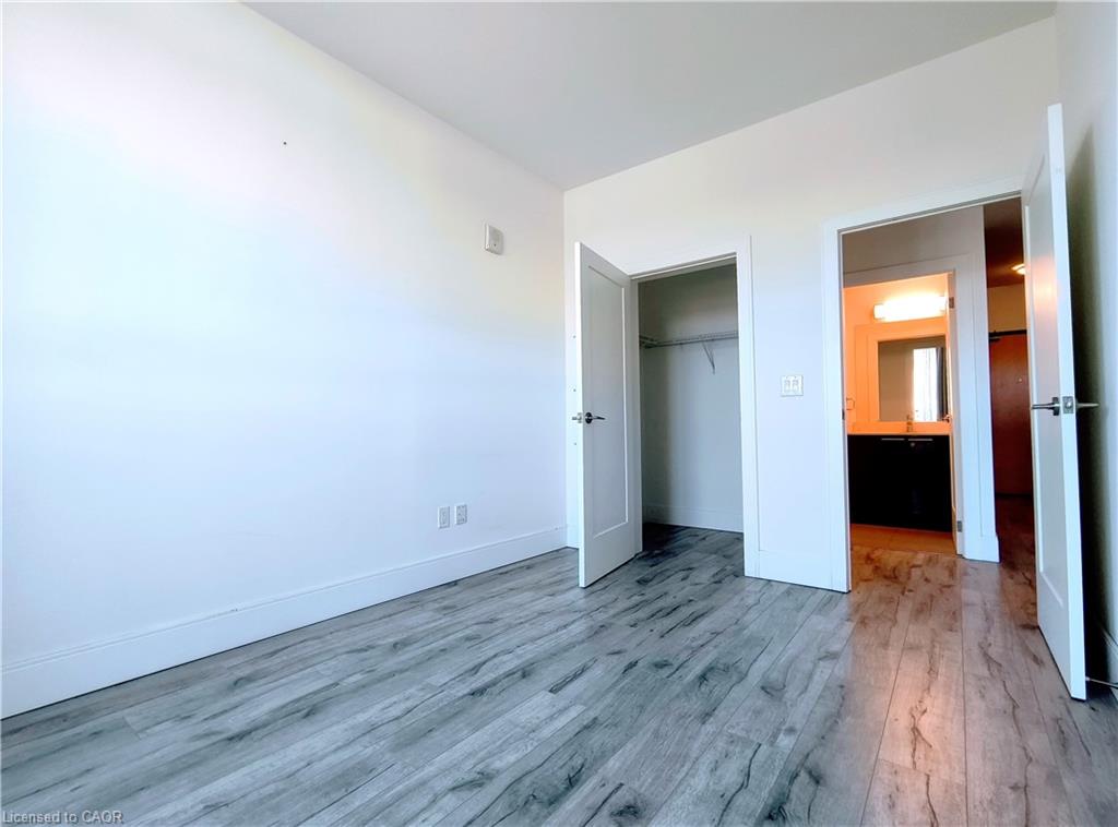 Modern 1 bedroom + den, 1 full bathroom condo with private underground parking and one locker, located on the top floor and finished with a bright, open-concept layout and floor-to-ceiling windows that bring in abundant natural light. This super clean unit features a spacious living area, a large bedroom, and a contemporary kitchen with stainless steel appliances, along with luxury laminate flooring throughout (carpet-free) and a convenient in-suite white stacked washer and dryer. Neighborhood with Schools And Community Center. Transit To University Of Waterloo And Wilfred Laurier, Go Train To Downtown Toronto. Quick Access To Hwy.