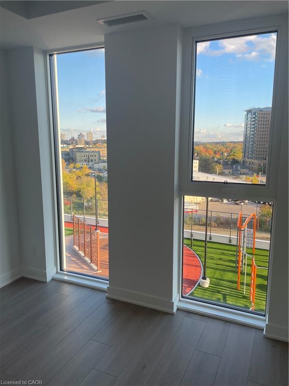 Station Park — Includes 1 Parking spot and Locker. The open-concept kitchen includes a large island with a breakfast bar, ideal for casual meals or morning coffee. The bedroom features a walk-in closet with ensuite privilege to the 4-piece bath. Bright, modern, and functional, with stainless steel appliances and in-suite laundry, this unit blends comfort and convenience with a touch of style. Unit has access to the terrace like no other! Rent includes Internet, A/C, and Heat. Tenant pays hydro and water. Residents have access to great on-site features like a sauna, outdoor gym, and half running track, plus full use of all amenities across the Station Park buildings — including a fitness and Peloton studio, bowling lanes, indoor lounge and bar, music room, and hydro-pool swim spa. Station Park is growing fast, with more dining, retail, and outdoor spaces coming soon. It’s also in a great location, close to Google, the University of Waterloo School of Pharmacy, and downtown Kitchener.