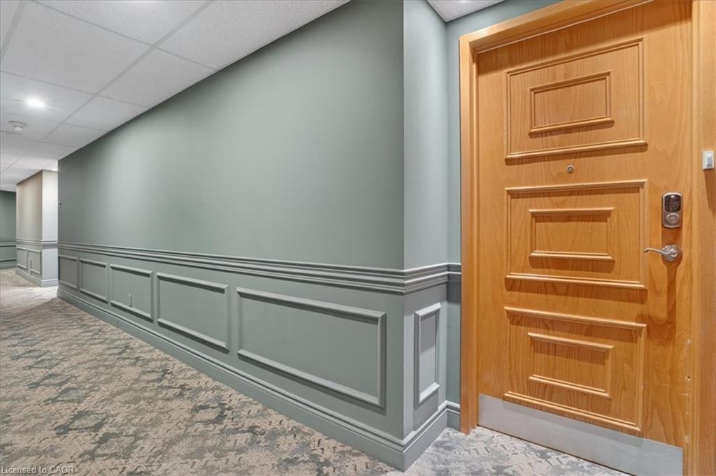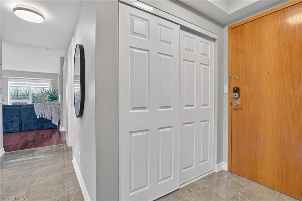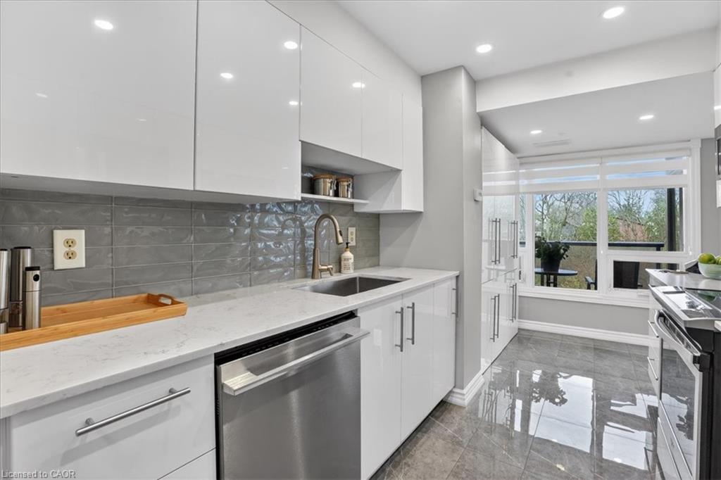 Absolutely stunning, large corner unit in desirable Kressview Springs condominium, located near picturesque Riverside Park and The Speed River in Cambridge - Preston area. Beautifully renovated 2 good sized bedroom, 2 full bathroom, including Primery with 3 pc ensuite, impressive open concept Living/Dining and Kitchen with abundance of floor to ceiling windows, flooded with natural light. Great views from every room and Balcony allowing you to enjoy green spaces and wild life year-round. Extensive contemporary finishes throughout include: new porcelain flooring (2020), white high gloss kitchen capboards and quartz countertops with new appliances, wall of pantry cabinets (all in 2021), both new bathrooms with quartz vanities, tub and glass shower (2021), full sized stainless steel washer & dryer (2019). All new windows, balcony doors and custom blinds installed in 2023. The building itself went through major renovations and updates including facade, lobby, hallways, windows, patio doors and parking garage. Unparalleled amenities that this building has to offer include: indoor heated pool, hot tub, sauna, party room with kitchen facilities, fitness center, very well equipped workshop, bike room, sewing room, summertime car wash area, large outdoor terrace area with BBQ for all to enjoy. Condo fees includs Heat, A/C, Water. The unit comes with underground parking spot and huge Locker. Great location minutes to 401, walking distance to beautiful trails at Riverside Park and shopping & restaurants in the the vibrant downtown.