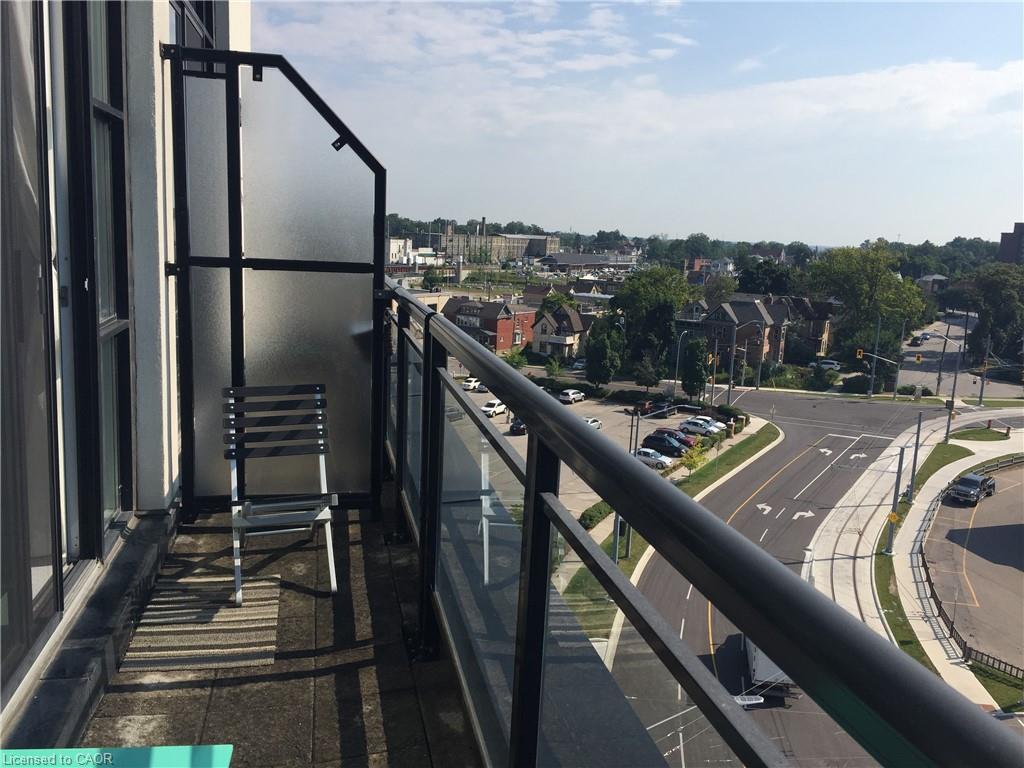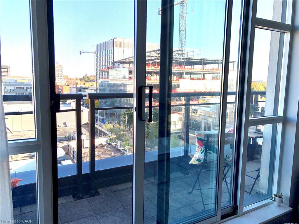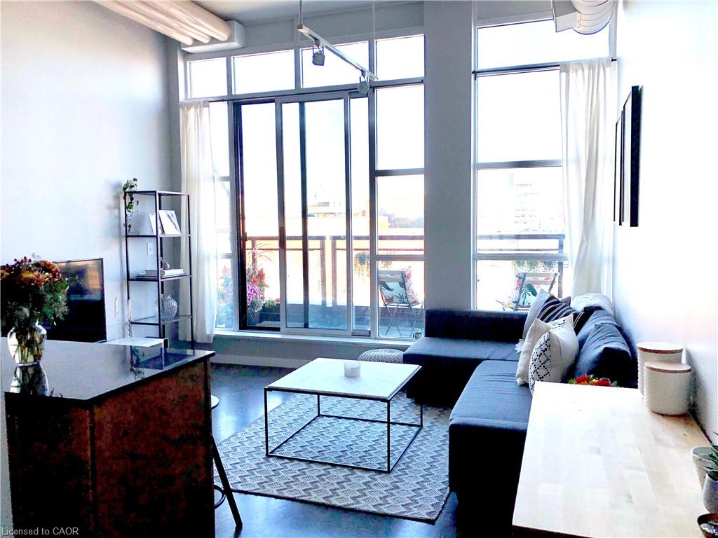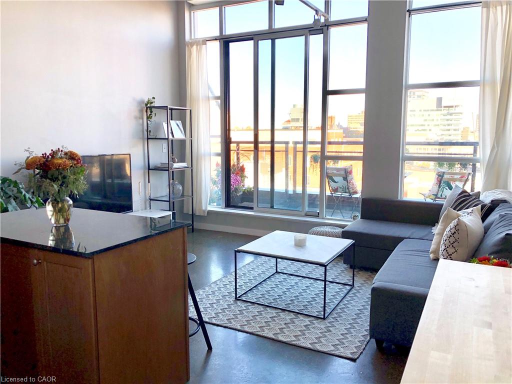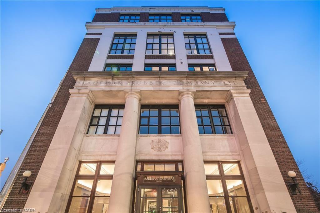 Location, Location, Location! This 1 bed + den/1 bath Penthouse Suite in the Historic Kaufman Lofts is awaiting it's new owner. Offering up contemporary living with 13 Foot ceilings, exposed pipes/duct work, polished concrete floors, an abundance of floor-to-ceiling windows and a private terrace. With an open concept design including a large kitchen with island open to a spacious living room great for entertaining guests, or a fantastic place to unwind and relax. A large bedroom, 4 piece updated bathroom and den/office/second bedroom round out the living space with the added convenience of in-suite laundry and storage closet. This unit includes 1 parking space and 1 owned locker. With incredible amenities, such as a roof-top patio and party room, and prime urban convenience, sitting right in the heart of Downtown Kitchener mere steps to the tech community (Tannery, Google, Vidyard, Atomic, Sunlife, School of Pharmacy, and countless other starts-ups), and everything it has to offer (LRT, shopping, restaurants, café’s, Victoria Park and more.) Don’t miss your chance to own this spectacular loft with incredible views, located at the historic Kaufman Lofts, and situated right in the heart of the “innovation district” of Downtown Kitchener!