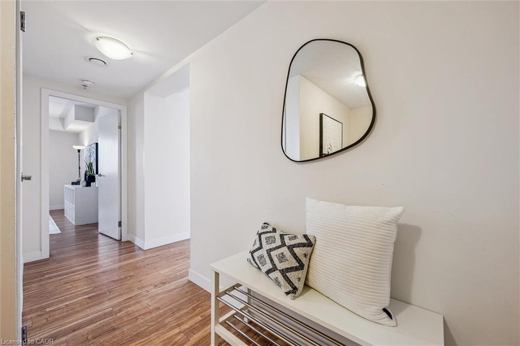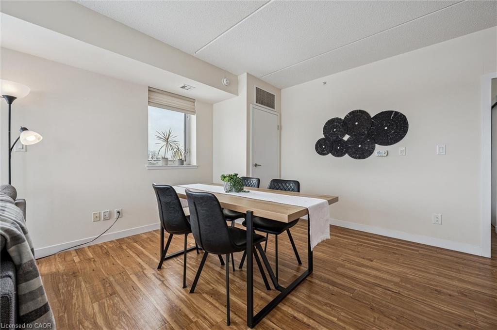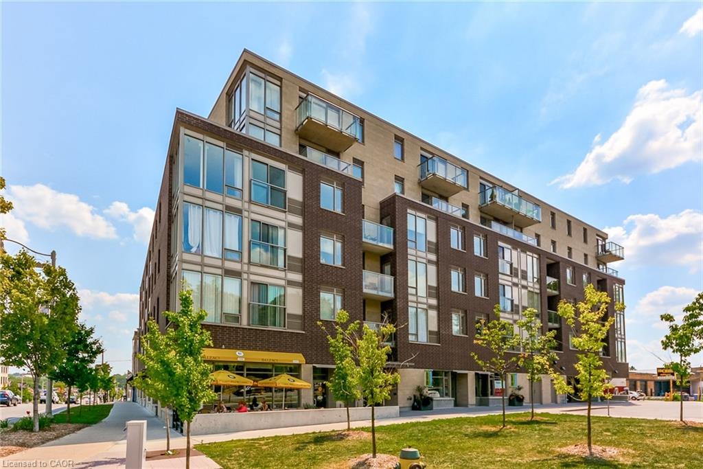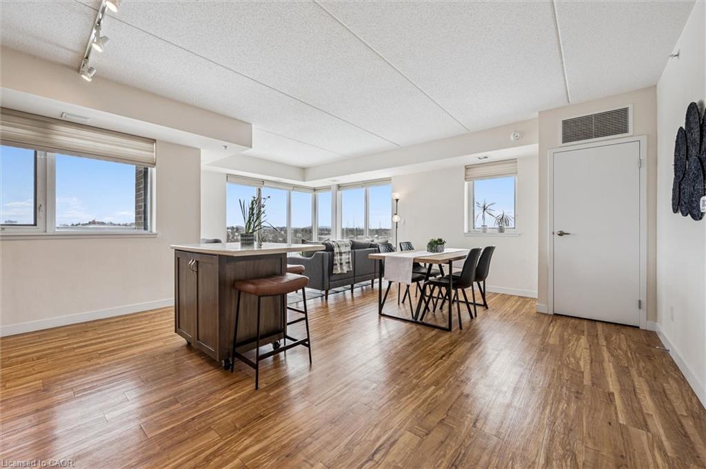 Located on the top floor, this bright corner unit with floor-to-ceiling windows offers stunning panoramic views stretching from The Ward to the West End, with beautiful sightlines toward the University of Guelph to enjoy in every season. Large windows and a private balcony flood the space with natural light, while the functional layout includes two bedrooms, a 4-piece bathroom, in-suite laundry, and an open-concept kitchen, dining, and living area ideal for modern living. Ample storage is found throughout, including a generous front hall closet + the unit features a spacious laundry room offering more storage and an owned hot water heater (2024). Located in the heart of Downtown Guelph, the building is home to Balzac's Coffee Roasters on the ground floor and is just steps to shops, restaurants, the Guelph Farmers' Market, and local amenities. A short walk to Guelph Central Station provides access to GO Transit trains and buses, VIA Rail, and multiple local transit routes-making this an ideal location for commuters and city lovers alike.