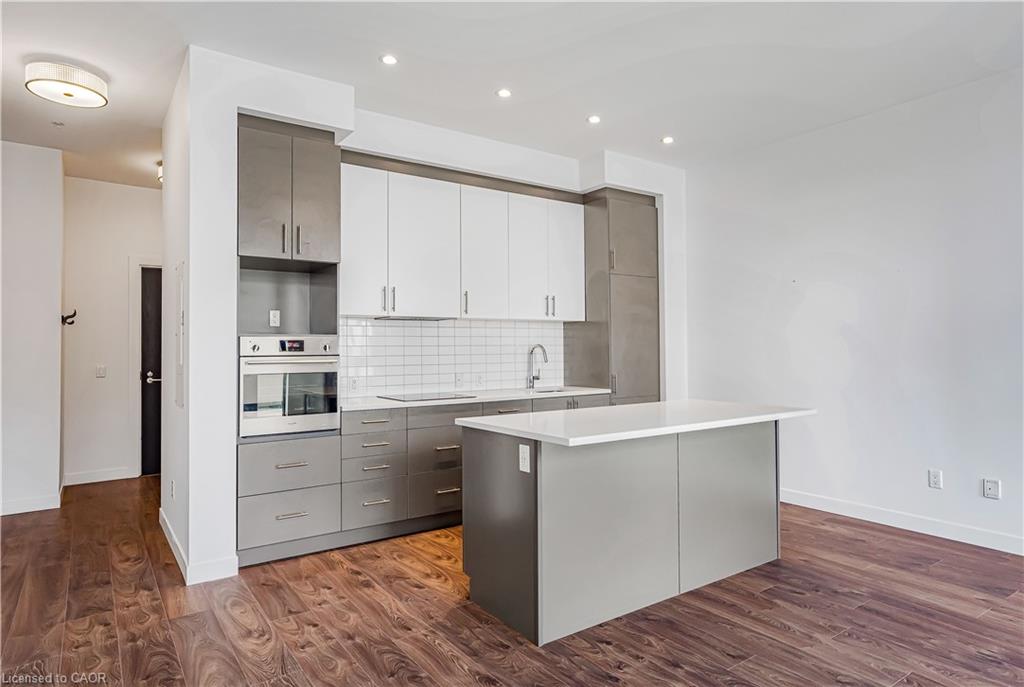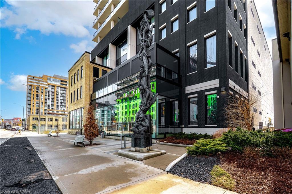 Looking for a well-designed condo with a rare 400+ square foot private outdoor terrace and immediate access to top-tier amenities? Welcome to Suite 606 at Circa 1877 in Uptown Waterloo. This bright 1 bedroom, 1 bathroom suite features floor to ceiling windows, high ceilings, and a modern open concept layout with upscale finishes throughout with in-suite laundry and storage locker included. The kitchen offers quartz countertops, a built-in panel fridge, wall oven, cooktop and a large island. The bedroom features built-in closets for efficient storage and priority access to the 3-piece bathroom. The unique 400+ square foot private terrace provides an exceptional outdoor living space for relaxing or entertaining. The suite is ideally located on the amenity floor with immediate access to the rooftop pool, terrace, BBQ area, gym, yoga studio, and lounge spaces. Steps to shops, restaurants, Vincenzo’s, ION LRT, and the hospital. Call to schedule your private showing today!